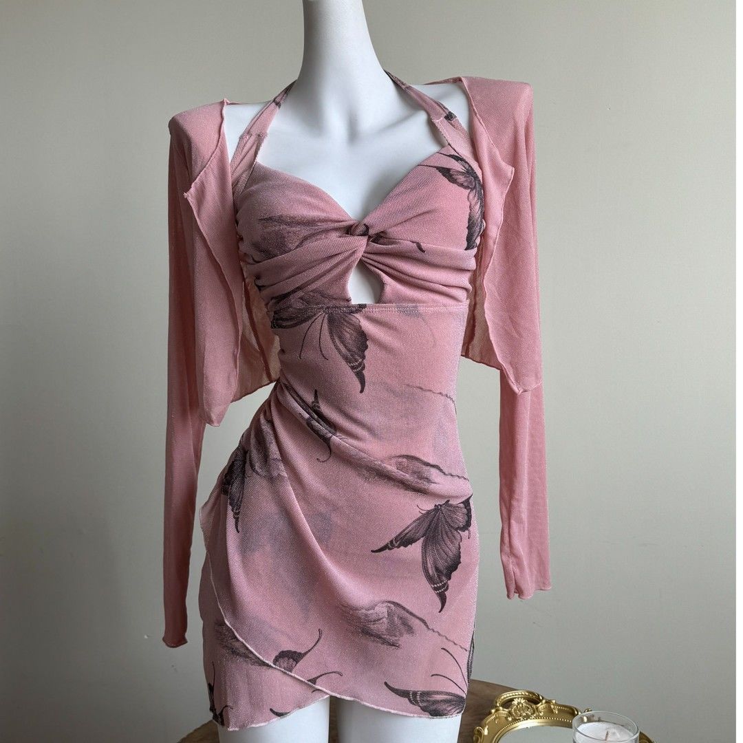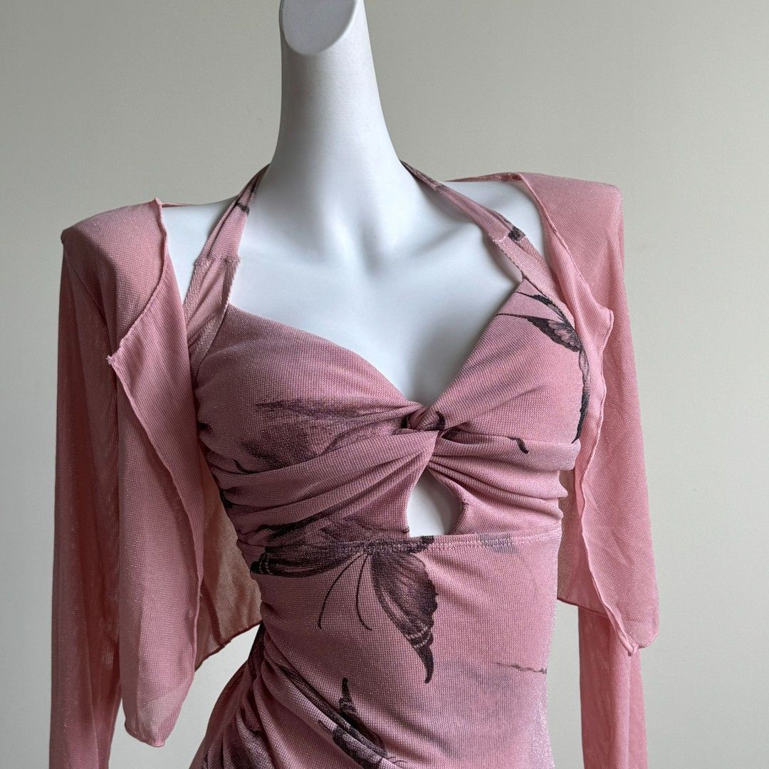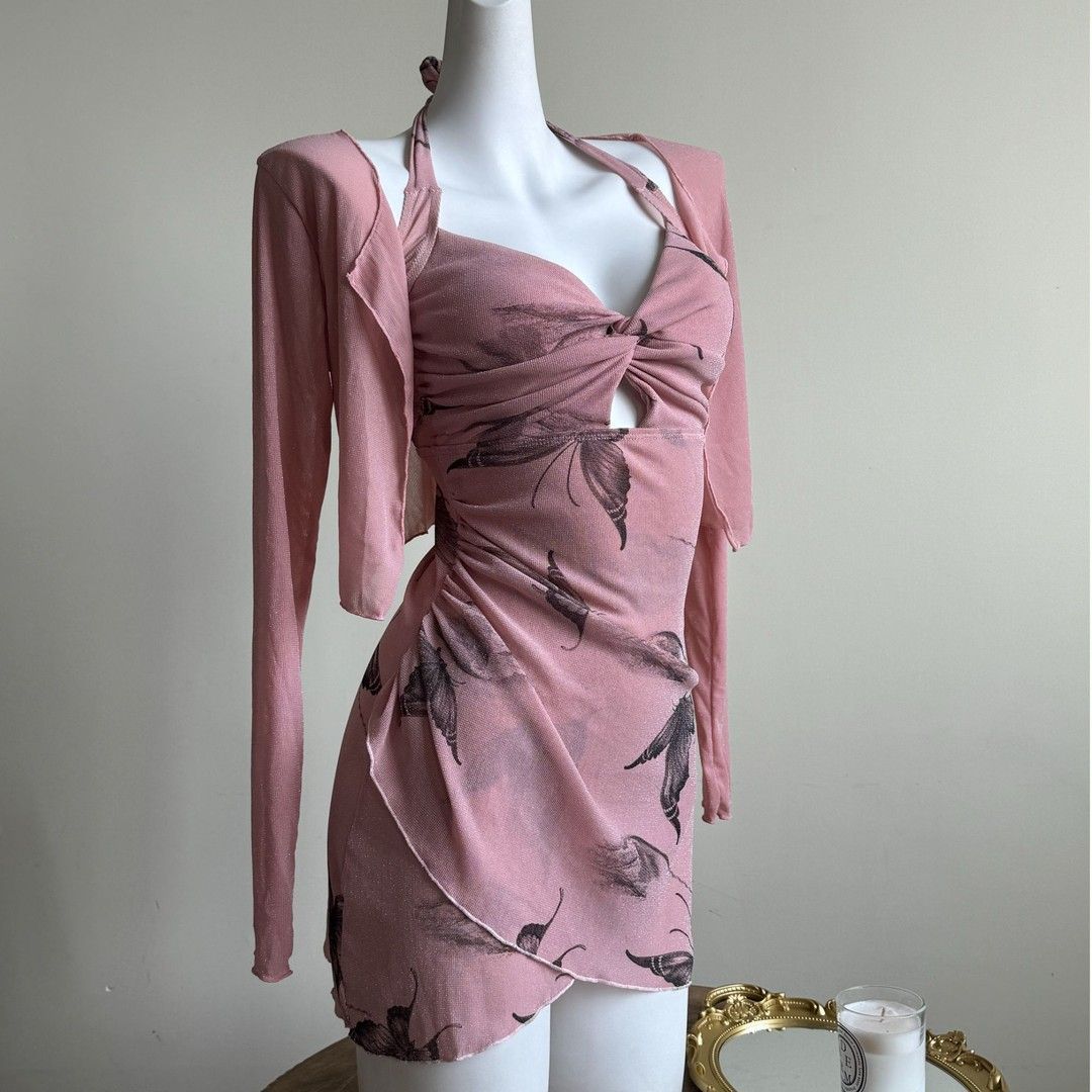 [드라이 리프 나비] 2025 수영복 스플릿 스커트 3피스 세트 배를 커버해 날씬해 보이는 긴팔 블라우스, 휴가 온천 플러스 사이즈