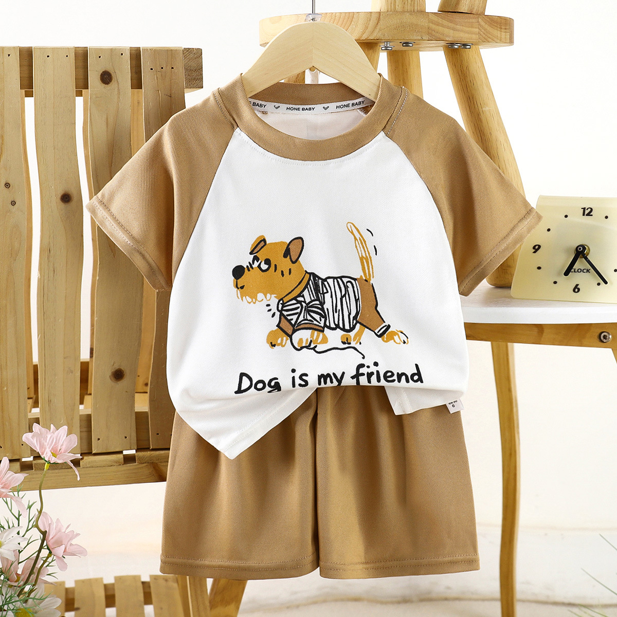 새로운 아동복 여름 아동복 세트 캐주얼 루즈핏 옷 남아 반팔 아기 도매 유아 패션 캐주얼