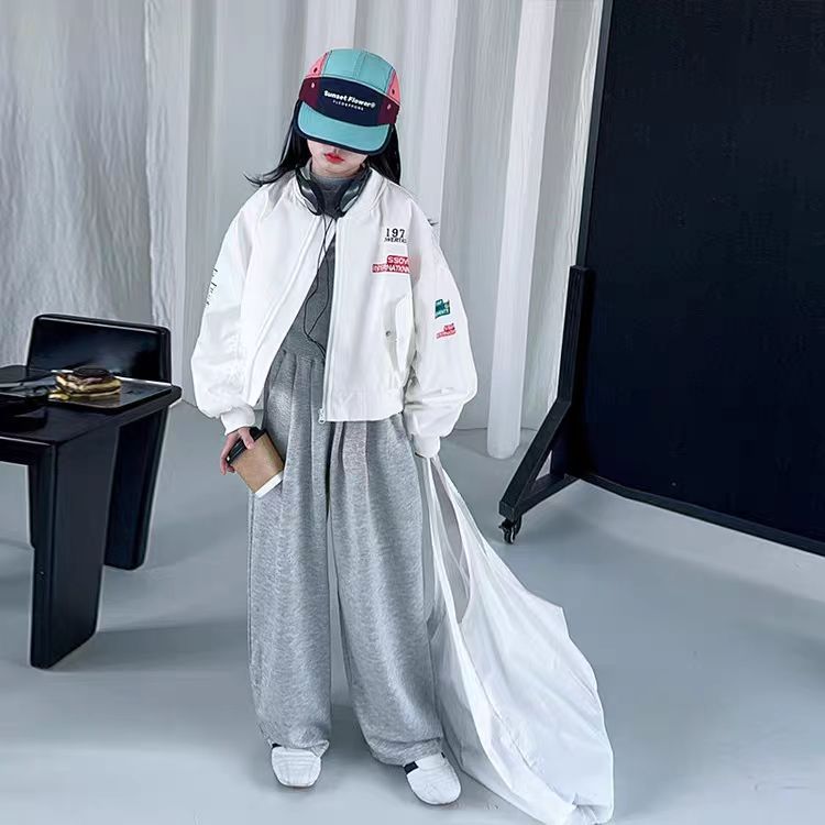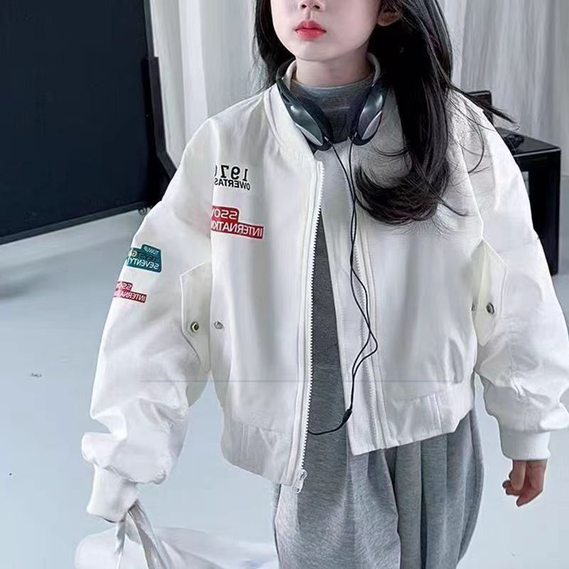 소녀 편지 캐주얼 코트 봄과 가을 어린이 야구 세트 2025 새로운 중대형 어린이 서양식 탑 재킷