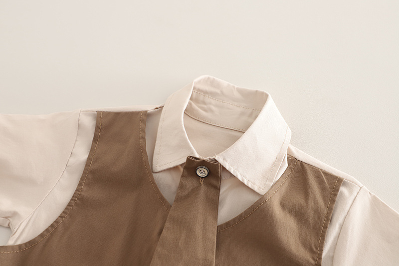 2025 새로운 아동 의류 대학 스타일 가짜 투피스 양복 여름 어린이 유행 반팔 셔츠 소년 바지 반바지