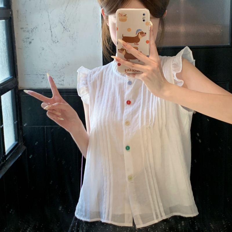 달콤한 우아한 단일 가슴 셔츠 여성의 2025 새로운 느슨한 민소매 디자인 연령에 민감한 탑스토어 가기