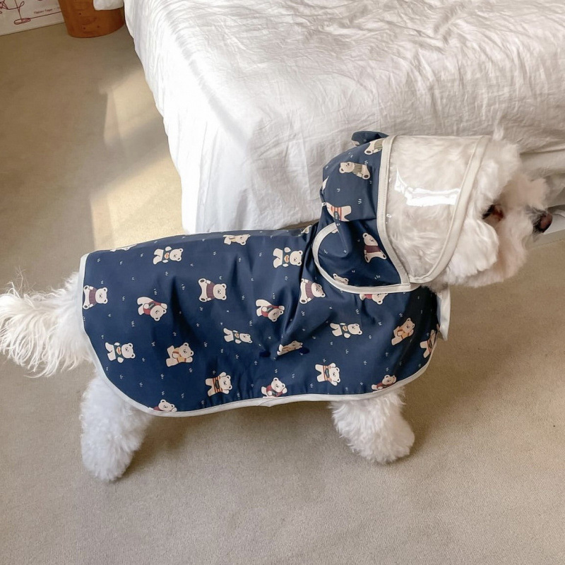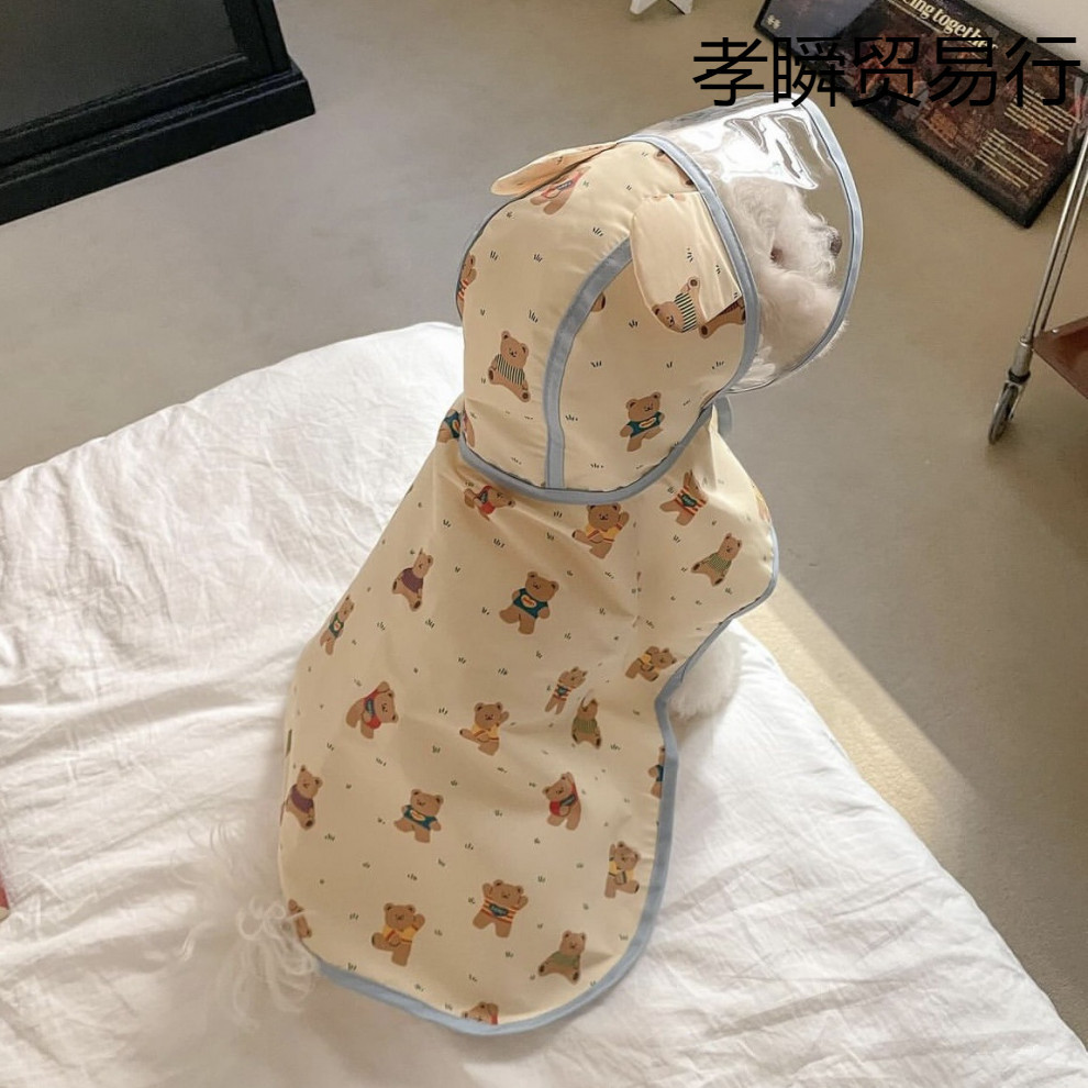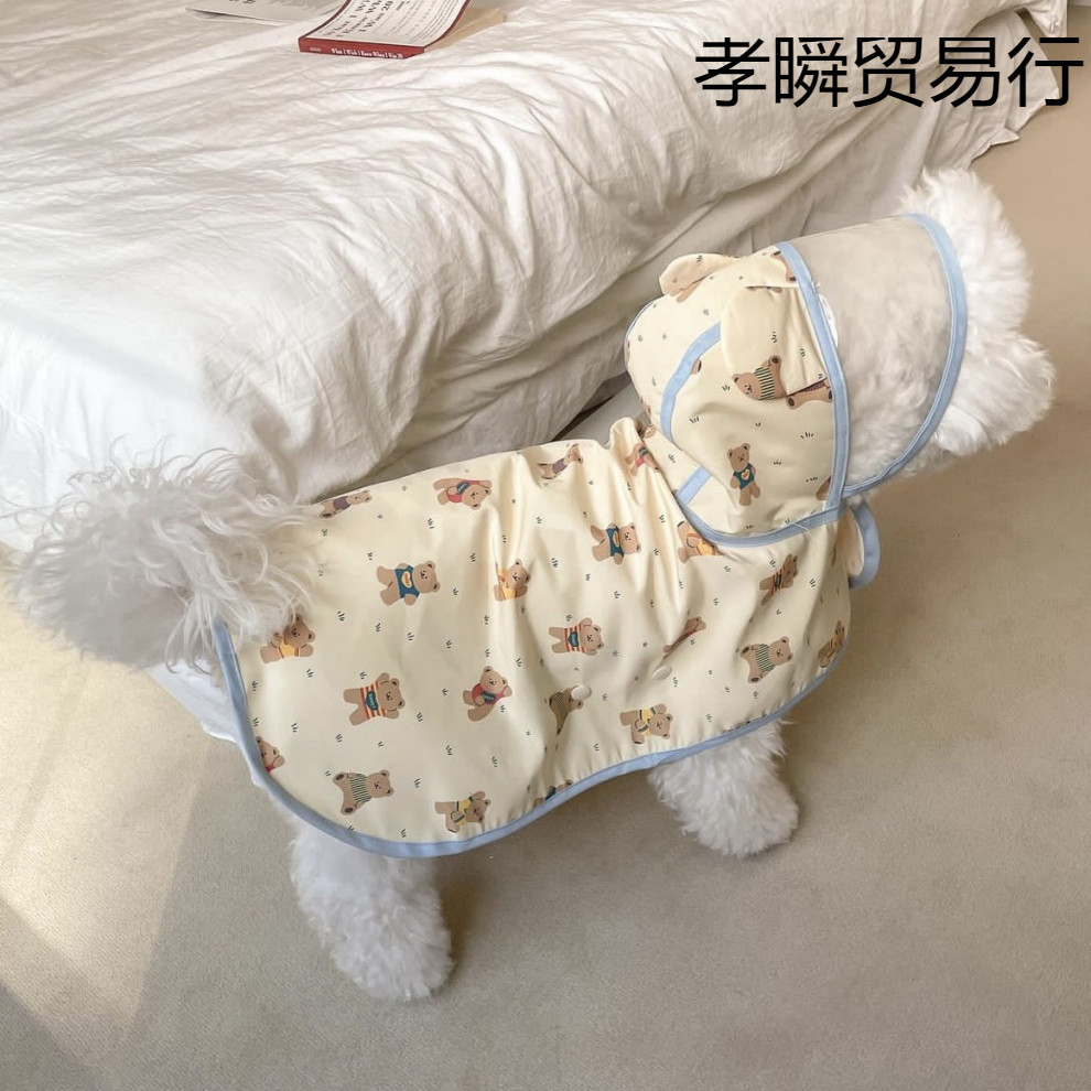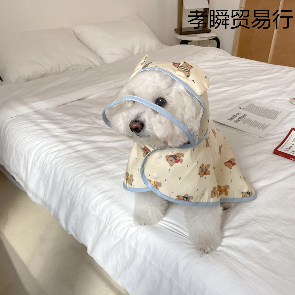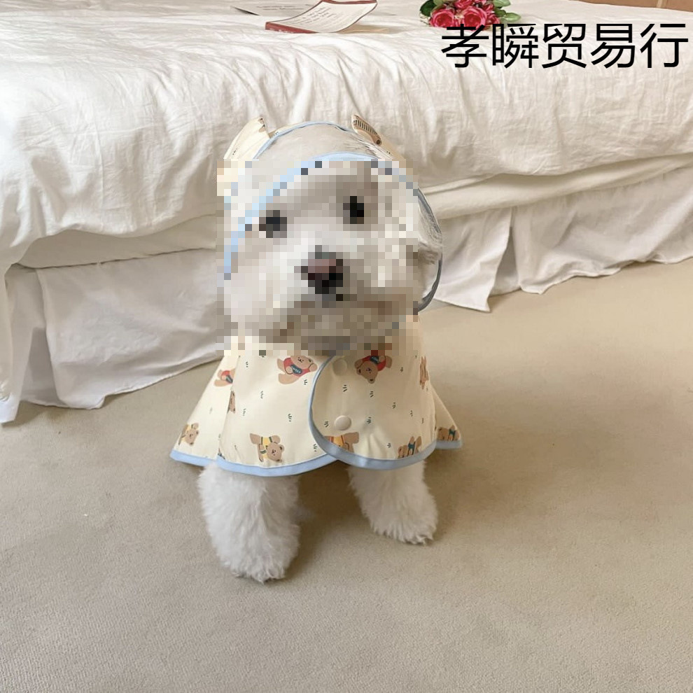 ♔ 한국 신상품 개 방수 비옷 판초 후드 만화 프린트 망토 테디 비숑 크로스보더스토어 가기
