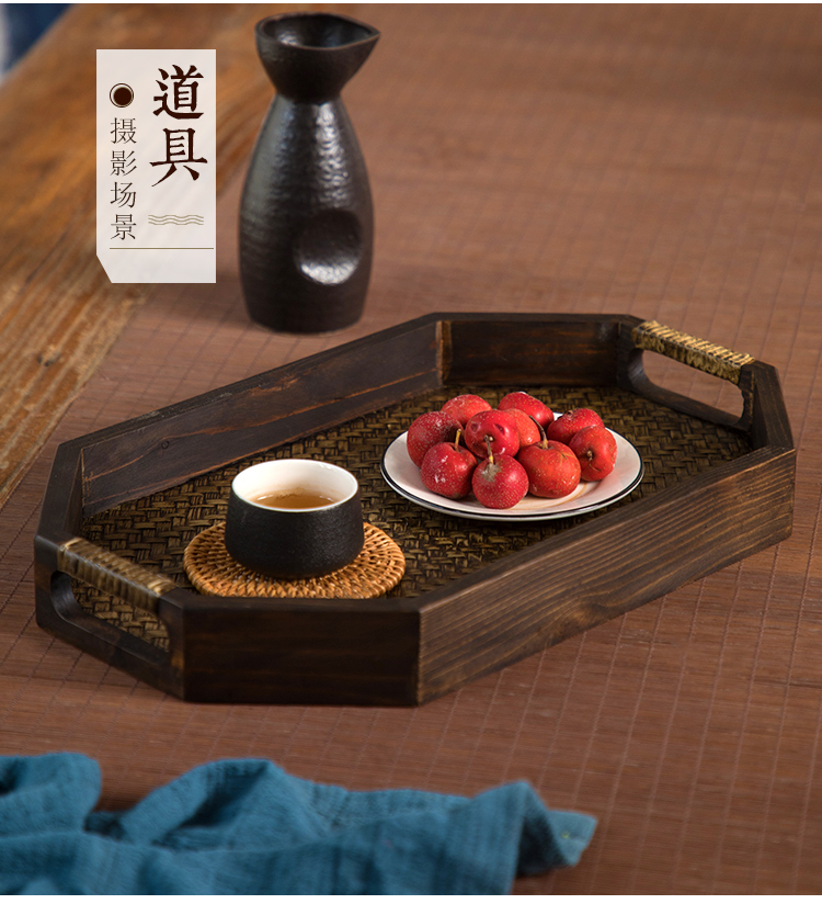 일본식 나무 접시 등나무 트레이 태국식 단단한 나무 커튼 티 트레이 복고풍 중국 스타일 가정용 티 컵 차스토어 가기