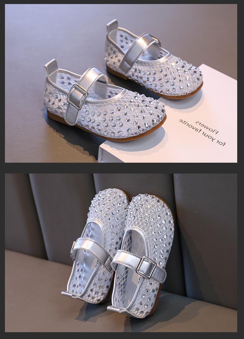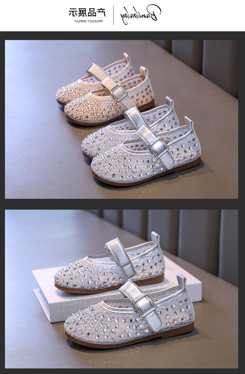 여아 샌들, 어린이 공주 가죽 신발, 시즌 도매 크리스탈 신발, 작은 향기로운 스타일의 얕은 입 콩스토어 가기