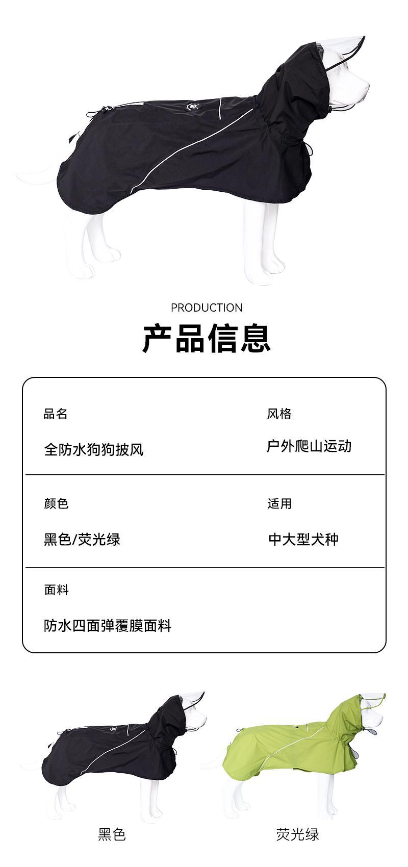 애완견 비옷 망토 중대형견 방수 코기 긴털견 사모예드 반사띠 후드 망토 형광 녹색