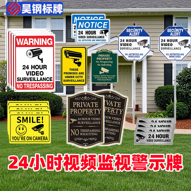 대외 무역 영어, 맞춤형 알루미늄 합금 표지판 안전 표지판 안뜰 24 시간 모니터링 경고 표시