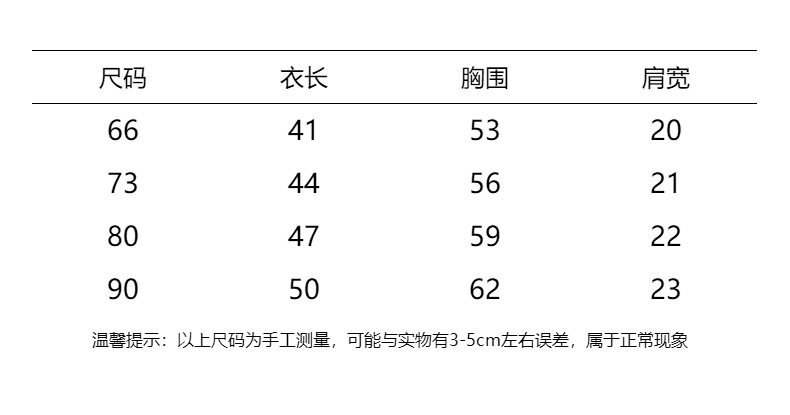 偏胖建议拍大一码。由于款式版型不一样同样的尺码可能会出现大小不一样,尺码仅供参考,每位妈妈对宝宝衣服合身和宽松要求不同,具体根据宝宝实际身高体重为准选择合适自己尺码,尺码衣长为手工平铺测量,有1-3cm的误差,不作为描述不符大小不合适的依据!