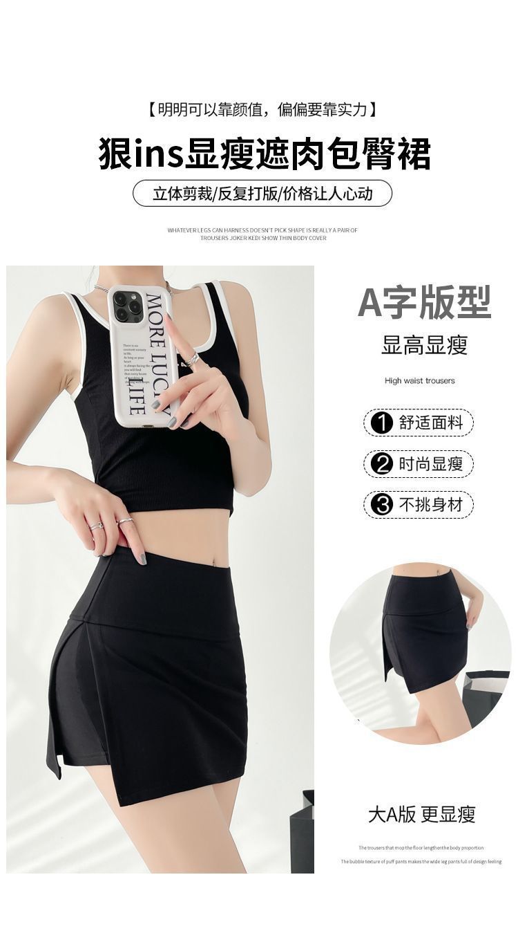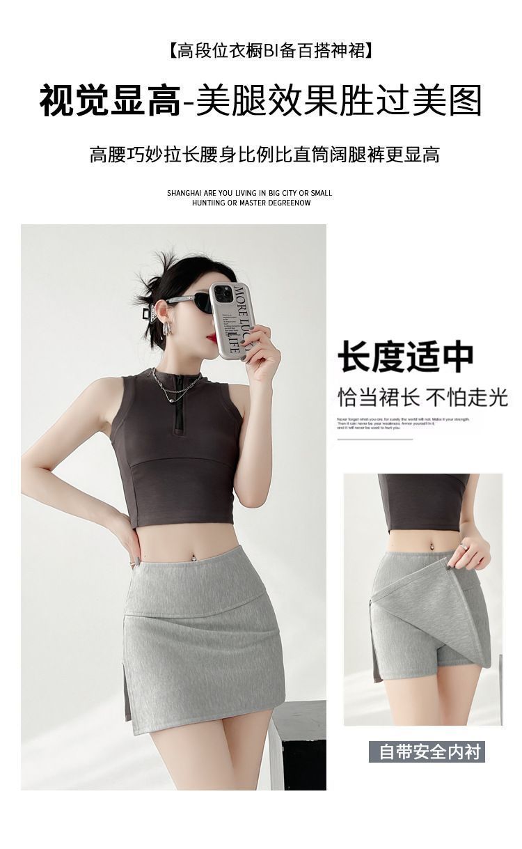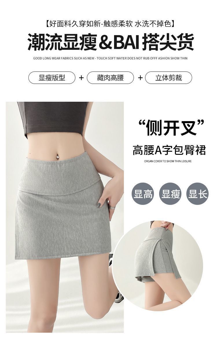 2025년 신형 사이드 슬릿 힙 커버 스커트 여성 노출 방지 스커트 여름 하이웨이스트 슬리밍 A라인 스커트 트렌디스토어 가기