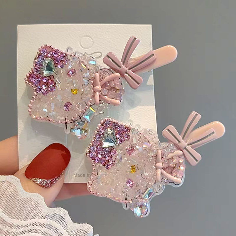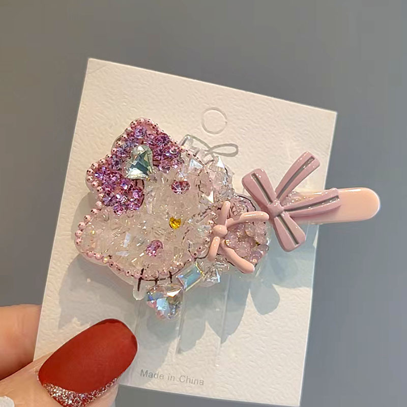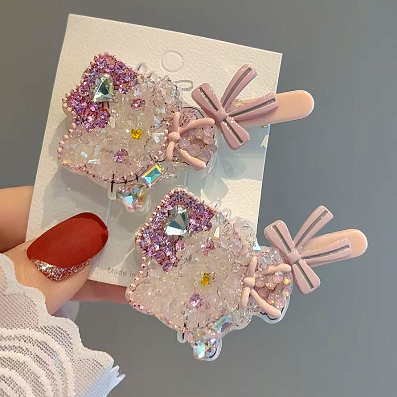한국 중공업 핑크 크리스탈 KT 고양이 머리핀 귀여운 소녀 하트 앞머리 머리핀 오리 부리 클립 머리 장식 여성용