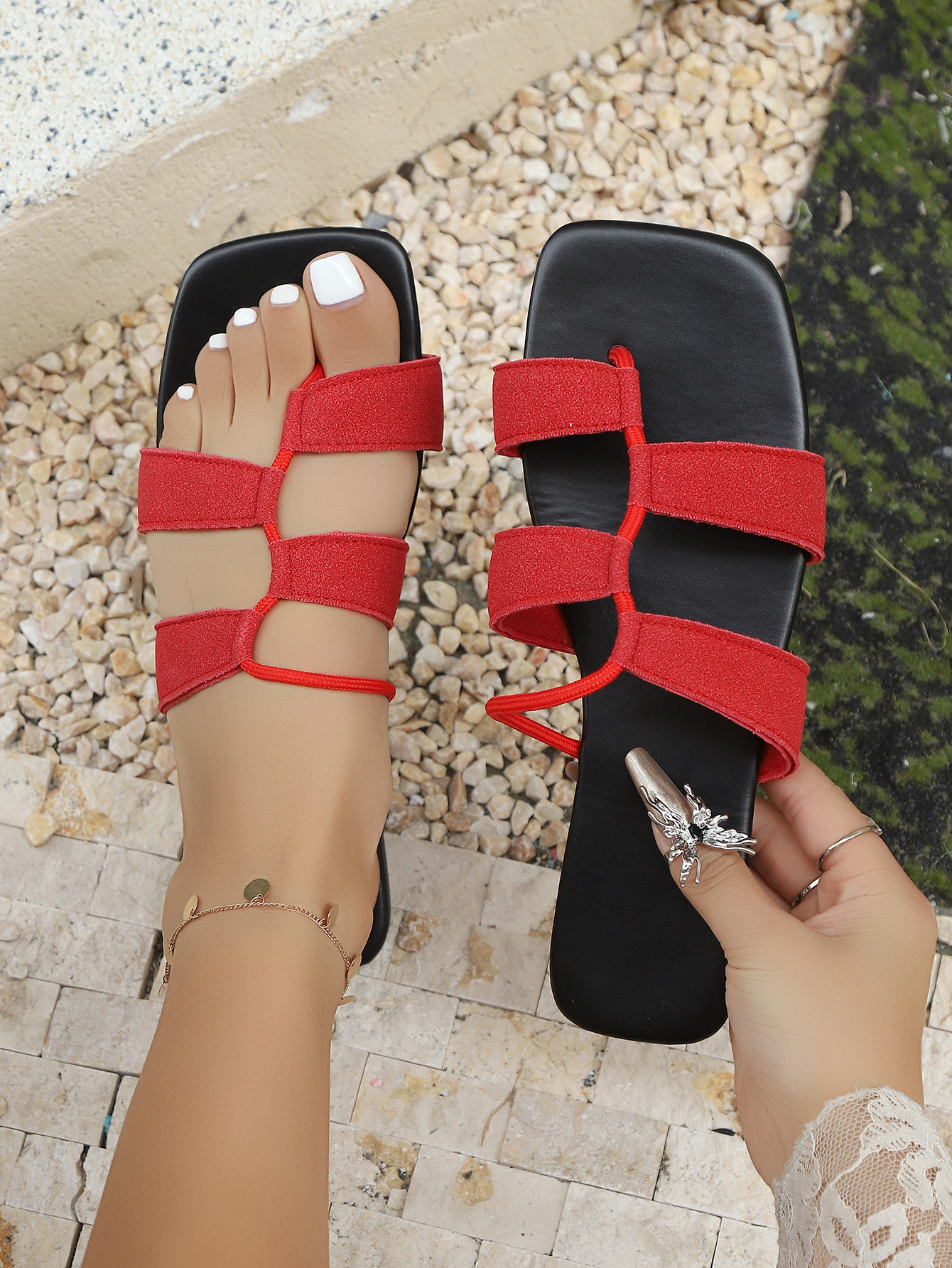 대외 무역 슬리퍼 여성의 여름 외부 캐주얼 2025 새로운 디자인 센스 니쉬 짠 우아한 플랫 샌들스토어 가기