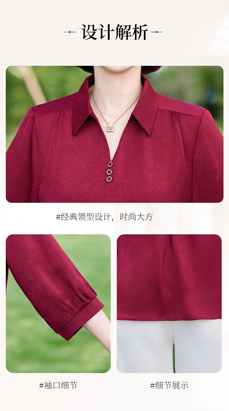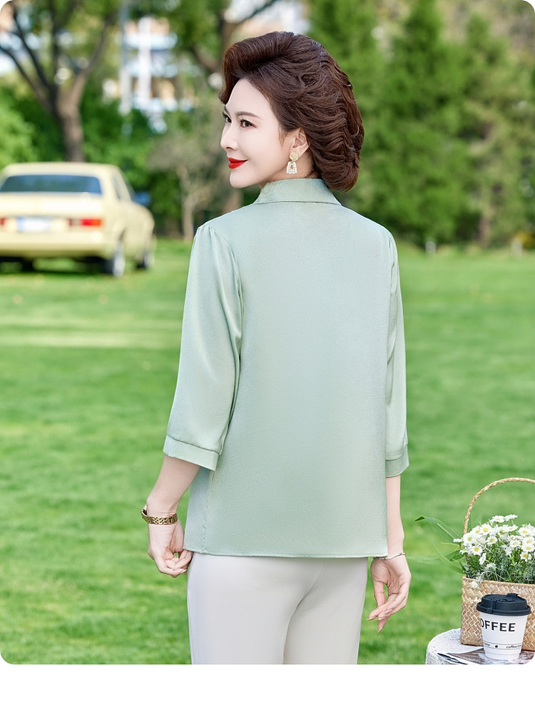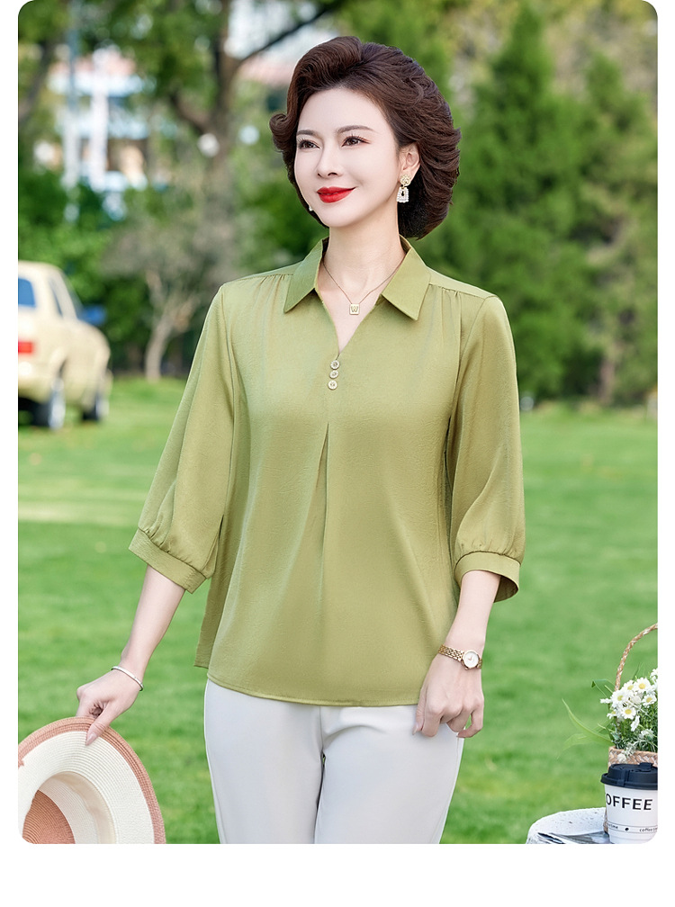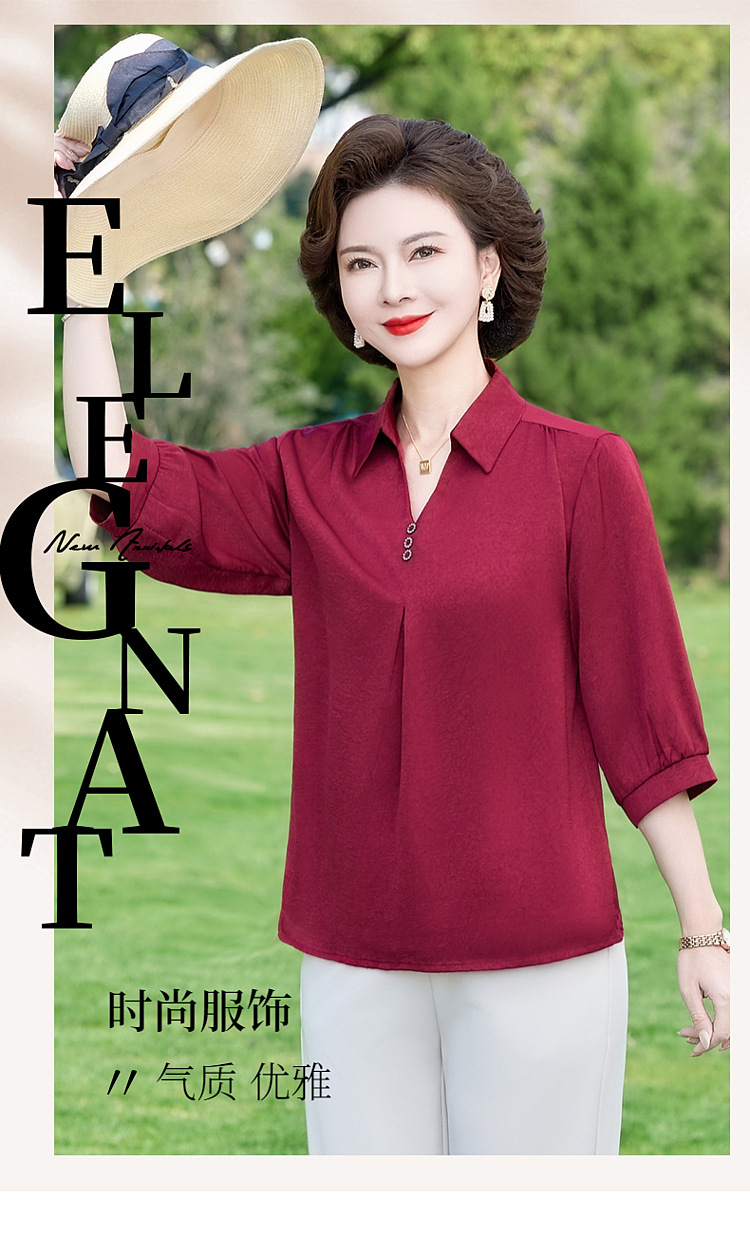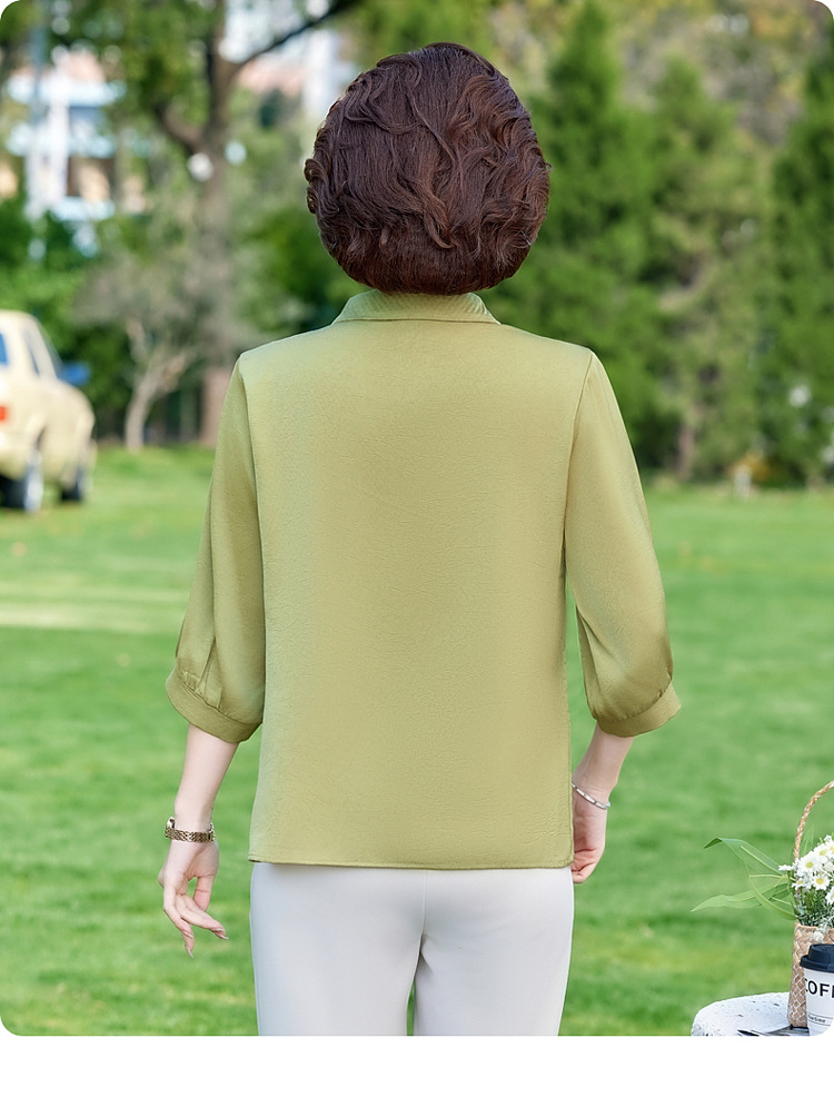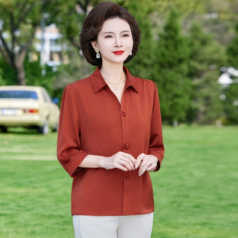 어머니의 반소매 셔츠 최고의 여성 여름 2025 새로운 아이스 실크 랩 캐주얼 느슨한 나이 감소 중년 여성 셔츠