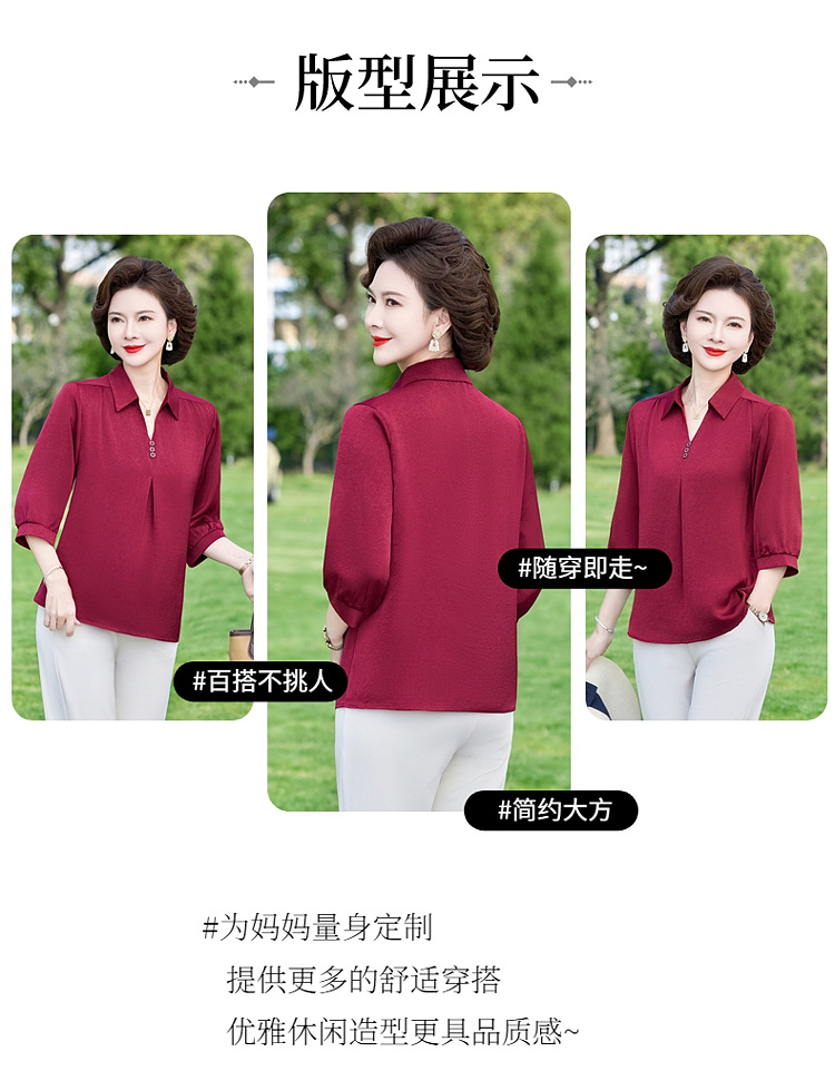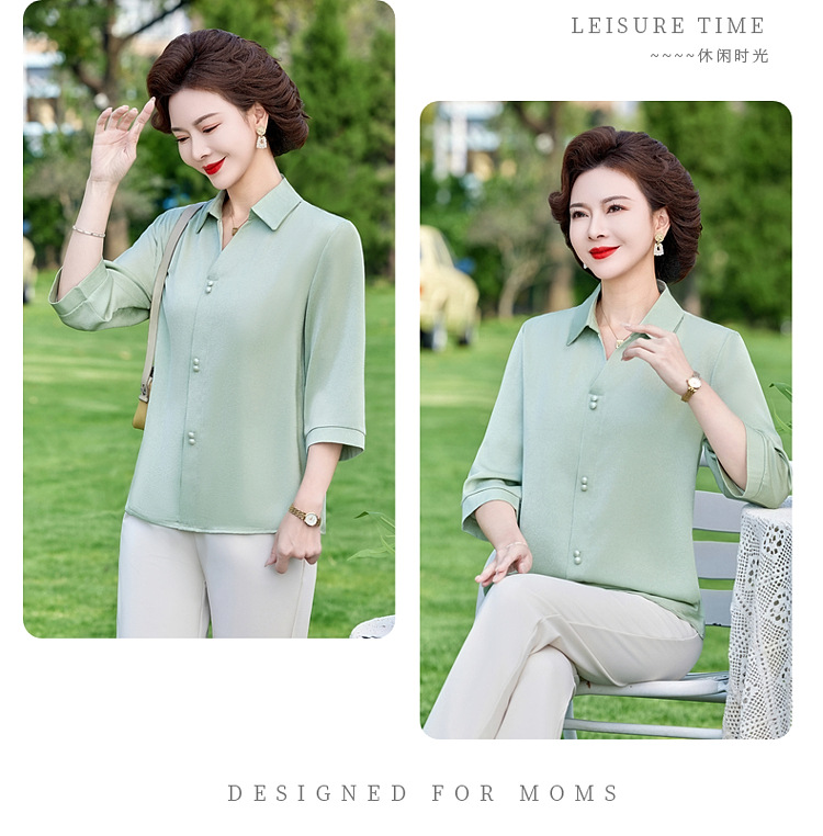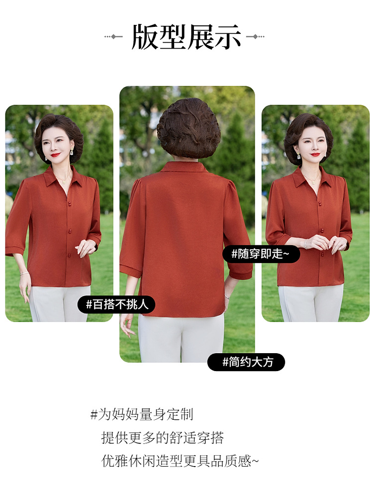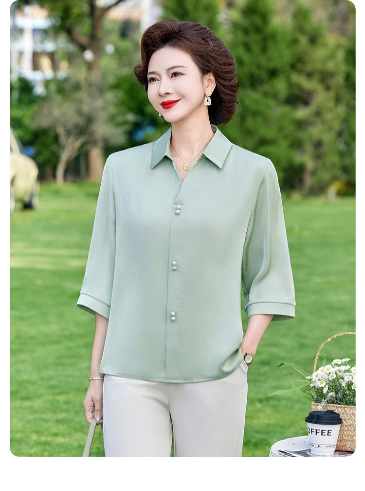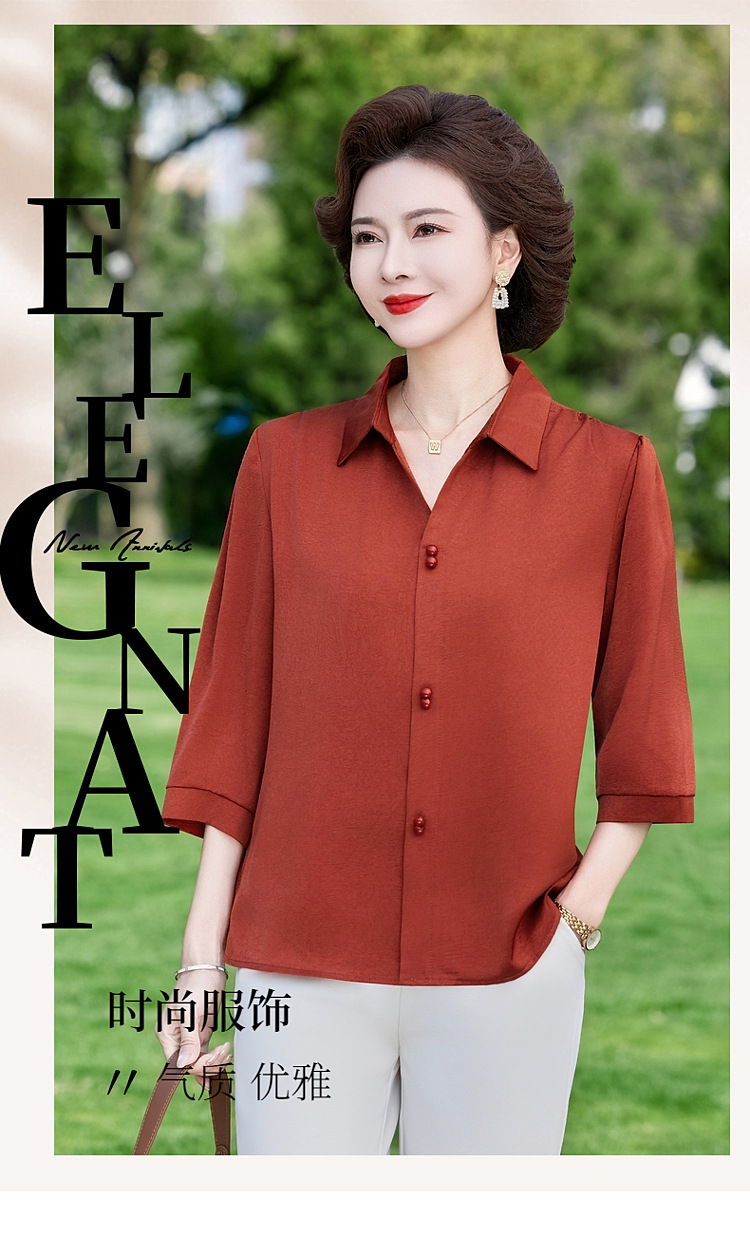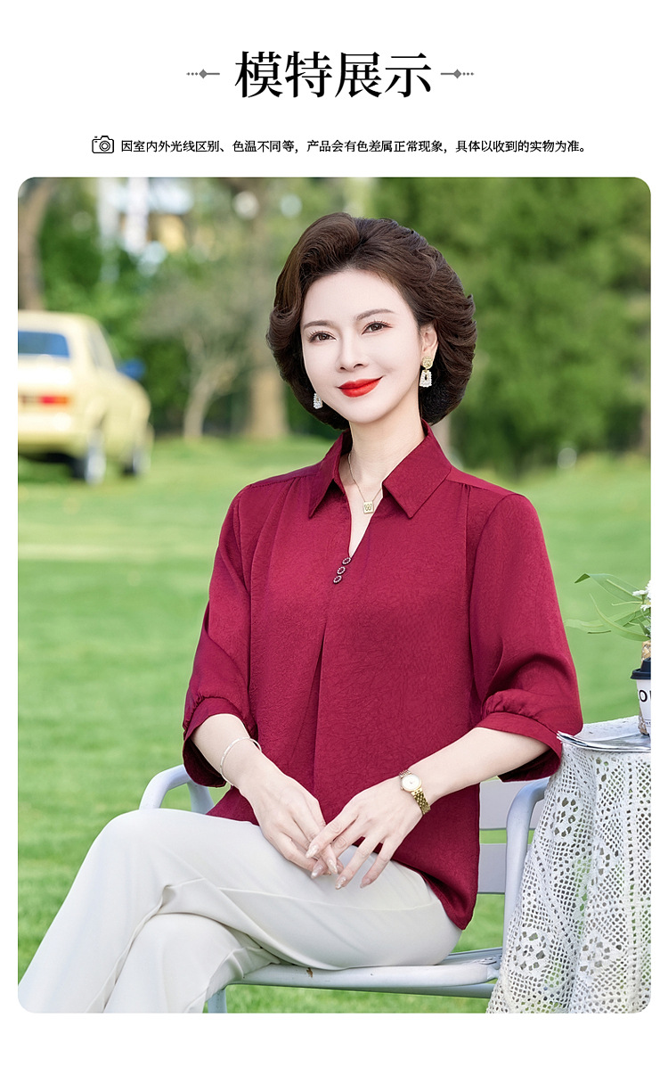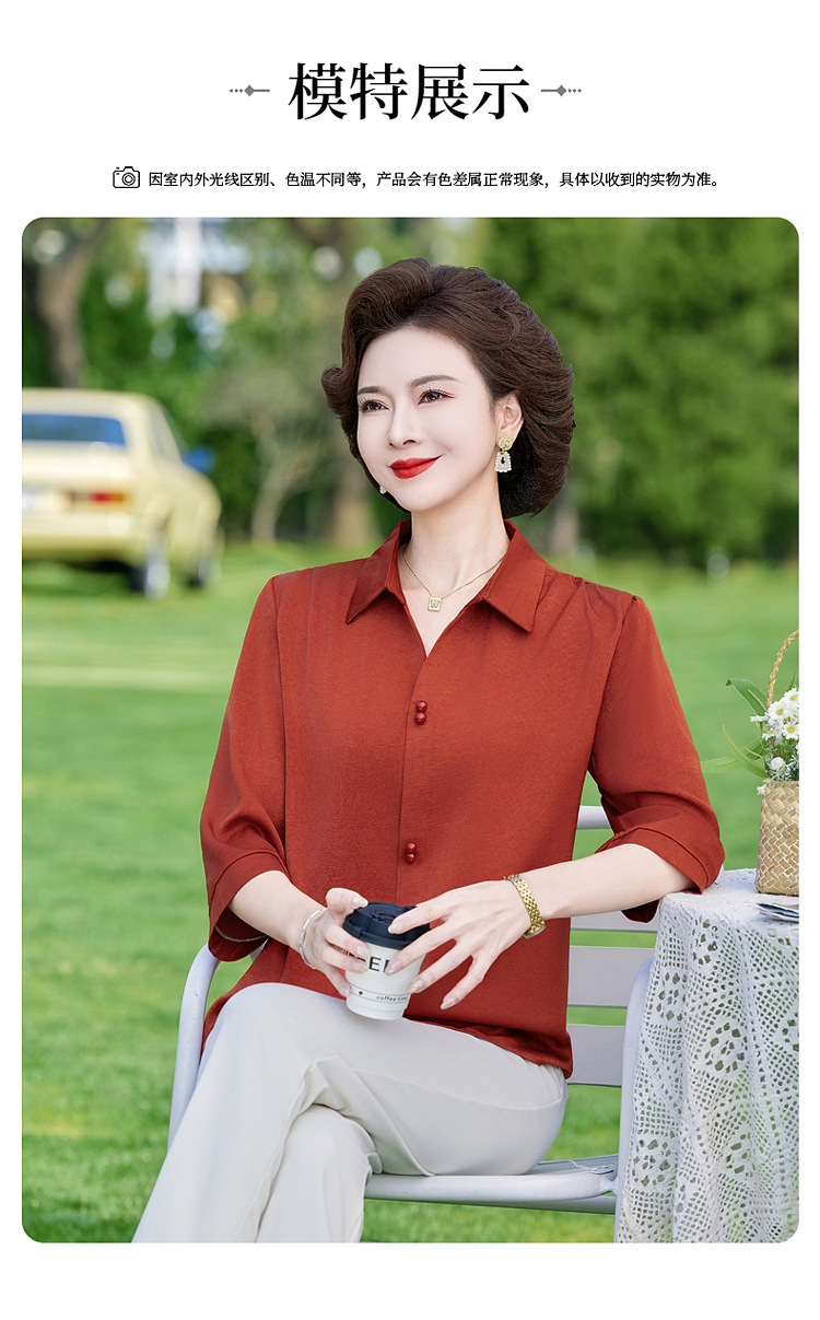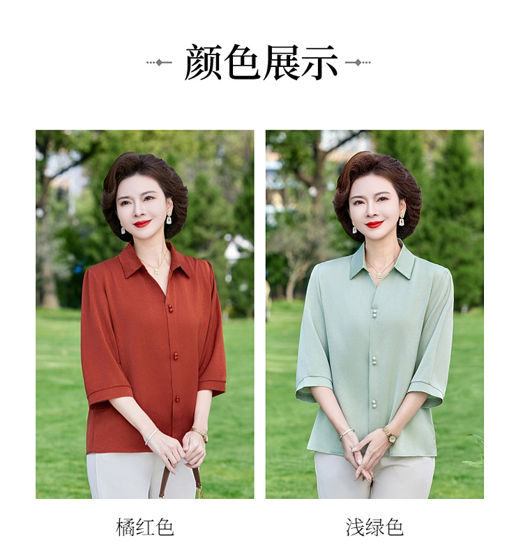어머니의 반소매 셔츠 최고의 여성 여름 2025 새로운 아이스 실크 랩 캐주얼 느슨한 나이 감소 중년 여성 셔츠스토어 가기