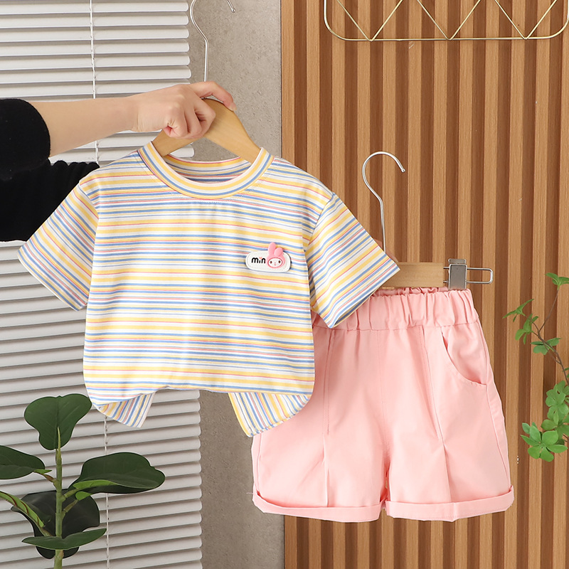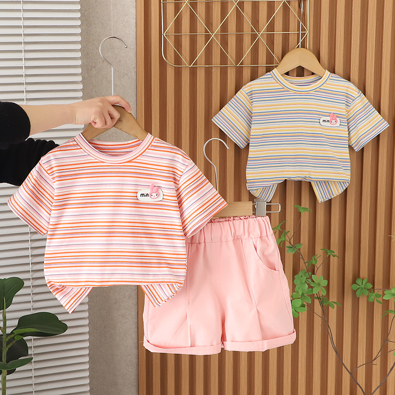 어린이 아기 여름 원피스 서양식 짧은 소매 유행 여자 스포츠 스타일 반바지 여름 세트 2025 새로운 캐주얼 여름