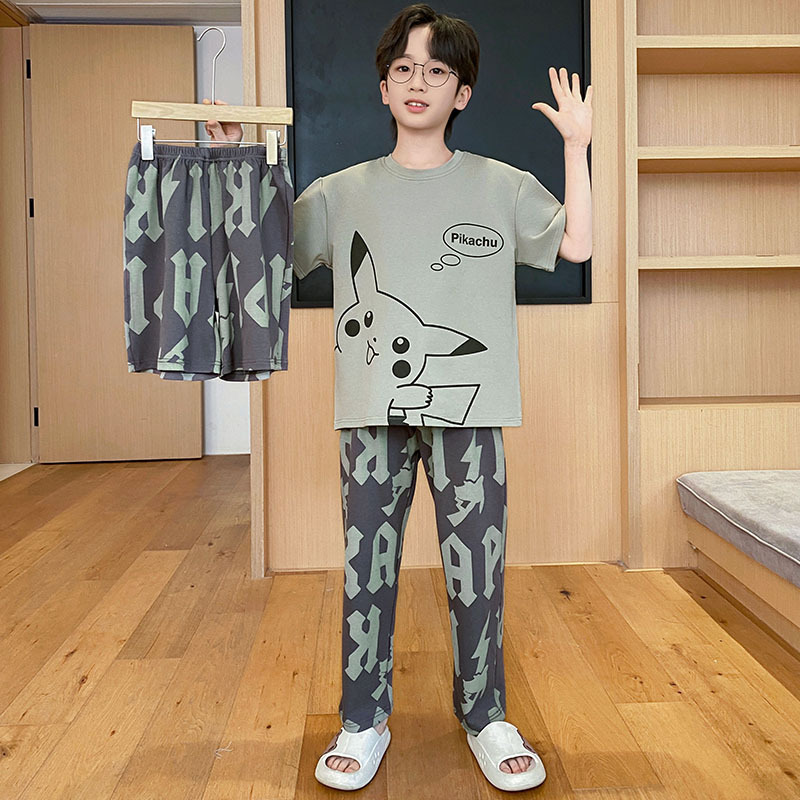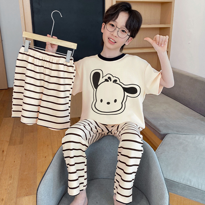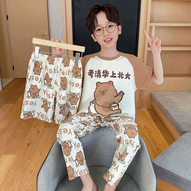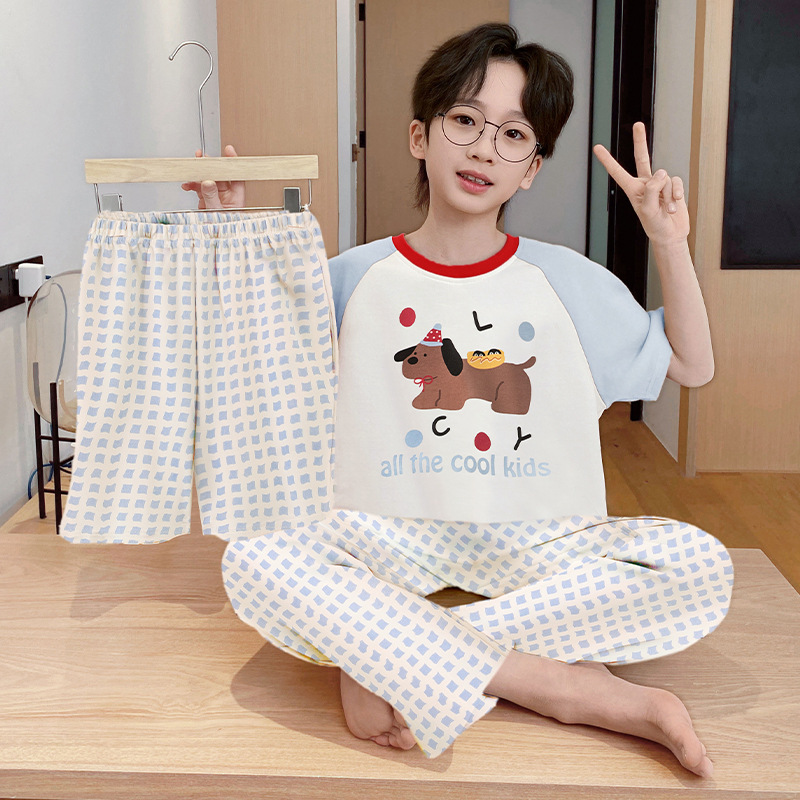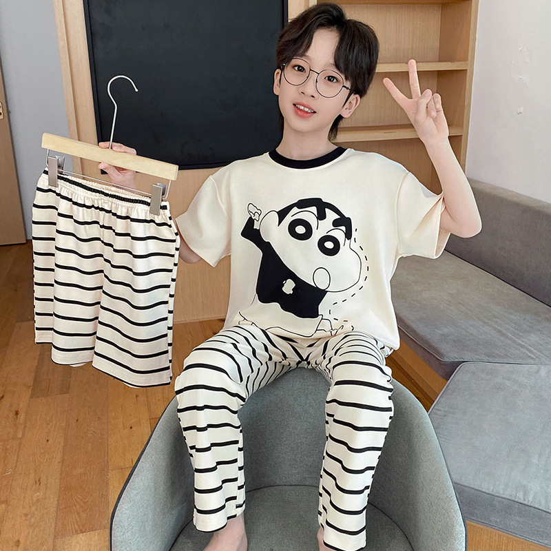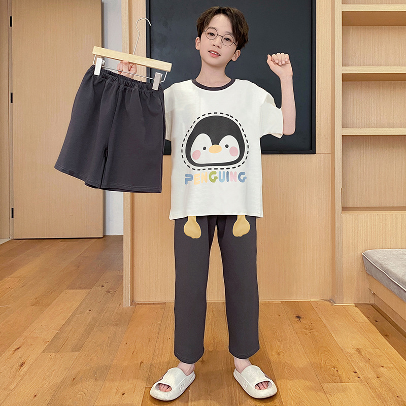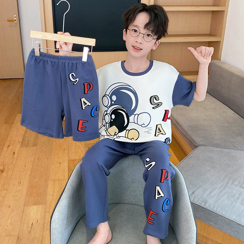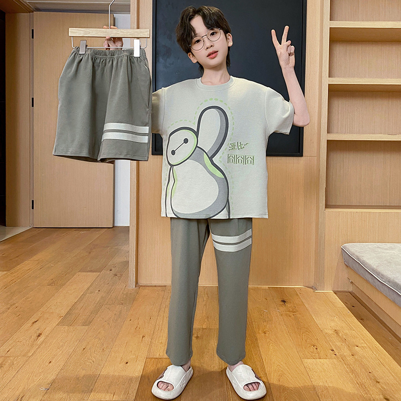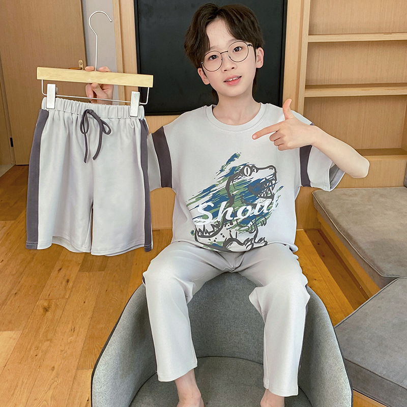 남아용 잠옷, 순면, 봄 여름 얇은 반팔 바지, 아동용 여름 3피스 슈트, 집 밖에서 입을 수 있는 옷스토어 가기