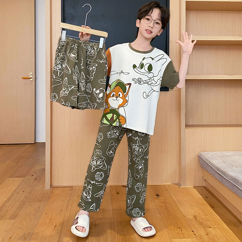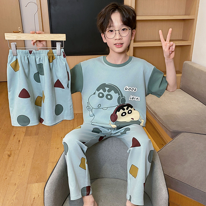 남아용 잠옷, 순면, 봄 여름 얇은 반팔 바지, 아동용 여름 3피스 슈트, 집 밖에서 입을 수 있는 옷