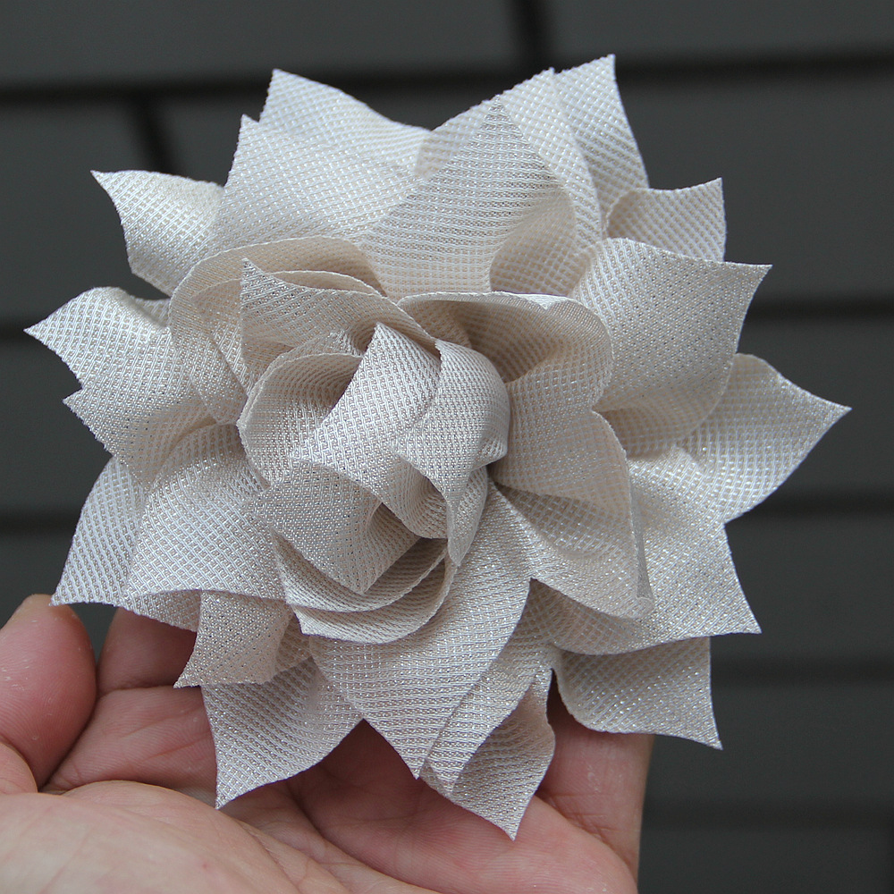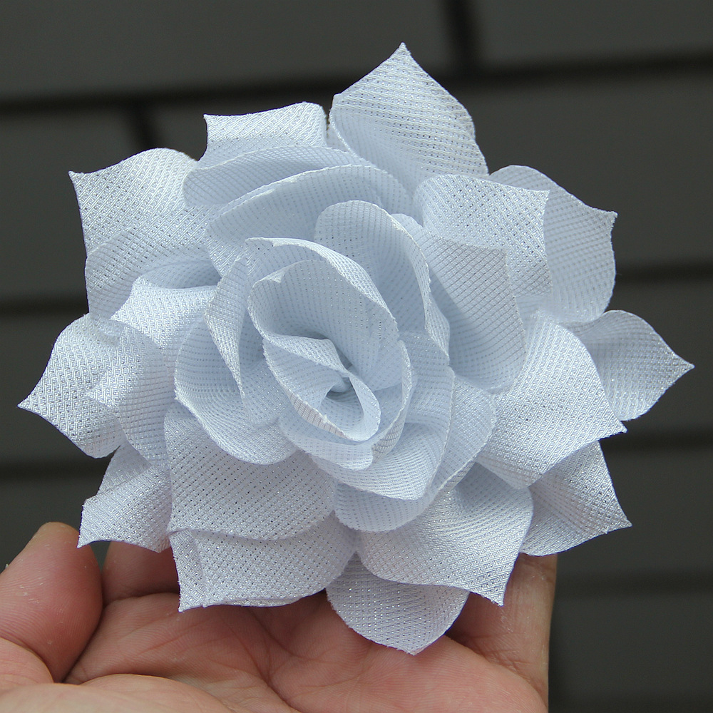 새로운 한국 스타일 패브릭 비치 슈즈 꽃 액세서리 12cm 더블 레이어 연꽃 잎 뾰족한 꽃 반짝 이는 실버 실크 헤드 꽃 의류 꽃