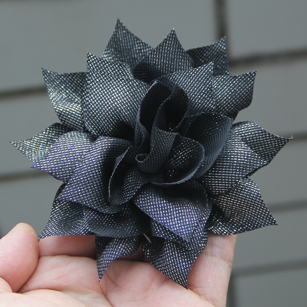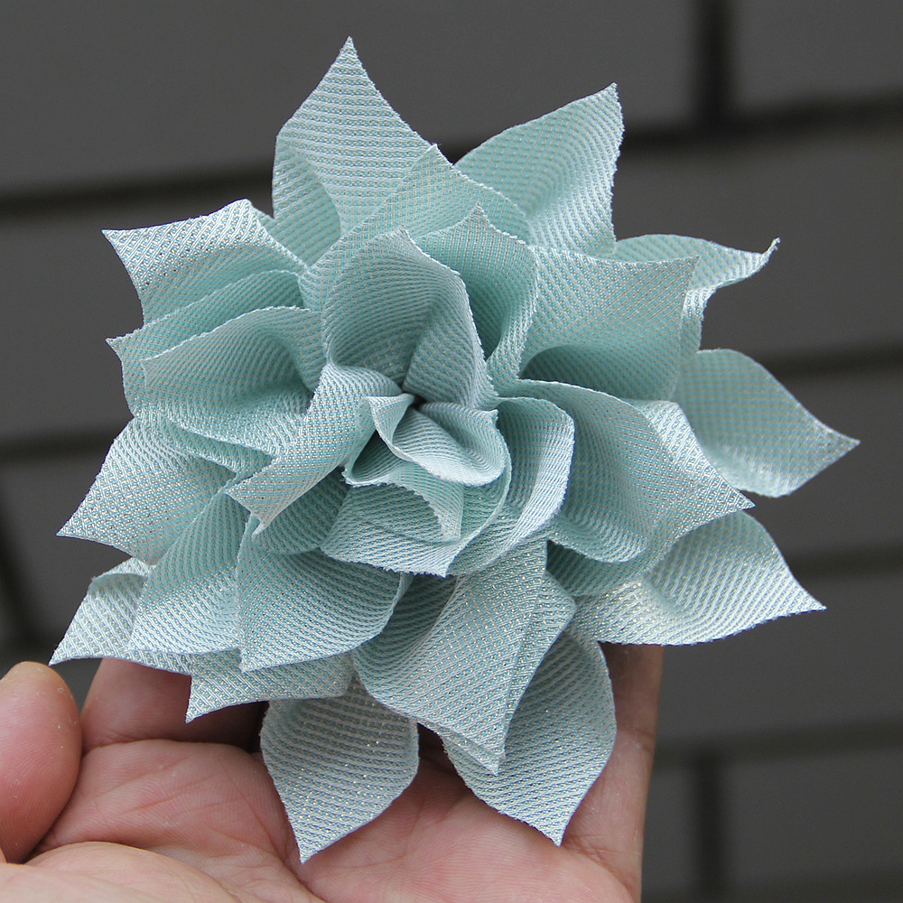 새로운 한국 스타일 패브릭 비치 슈즈 꽃 액세서리 12cm 더블 레이어 연꽃 잎 뾰족한 꽃 반짝 이는 실버 실크 헤드 꽃 의류 꽃스토어 가기