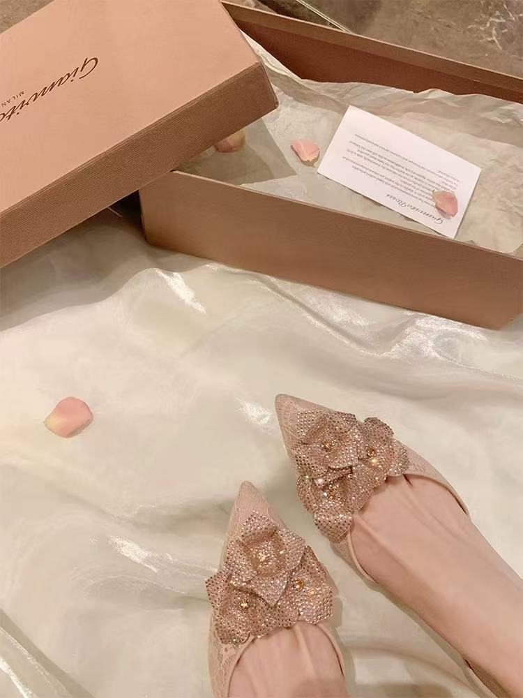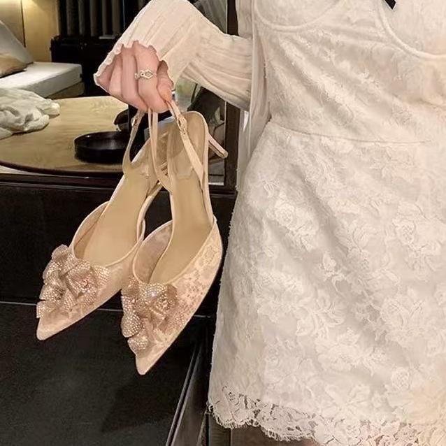핑크 누드 스타일 포인티드 토 플라워 하이힐 2025 여름 신작 한국 스타일 스틸레토 힐 대외 무역 패션 여성스토어 가기