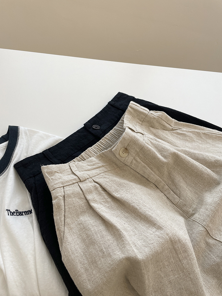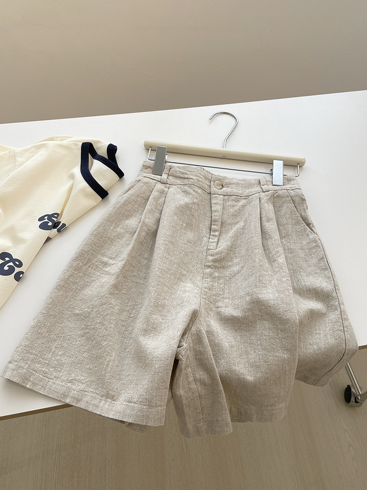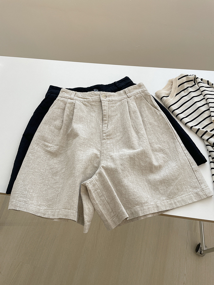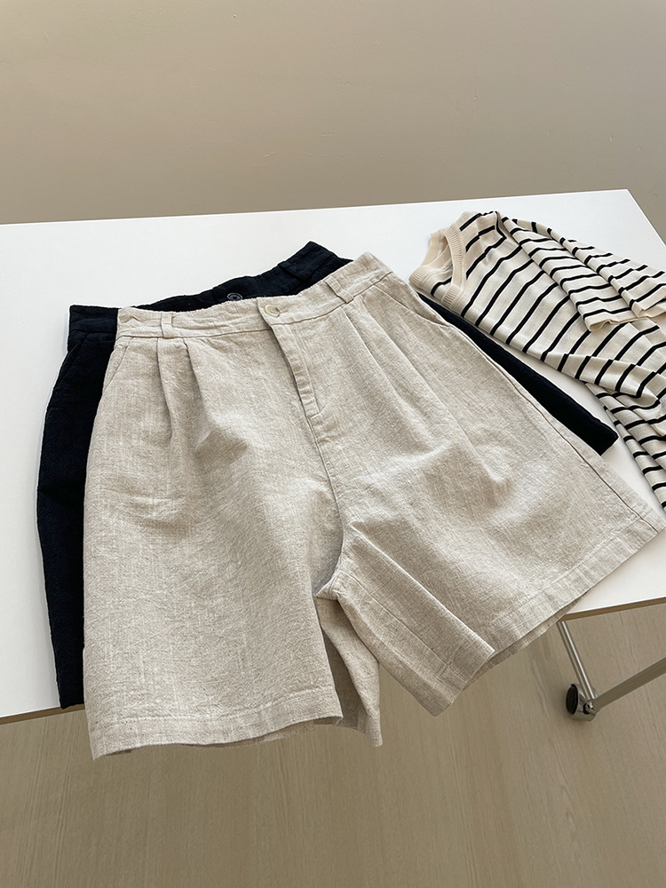 ju显瘦~复古棉麻短裤女!夏季半松紧腰通勤a字阔腿休闲中裤五分裤
