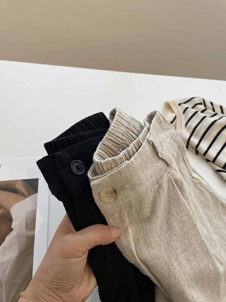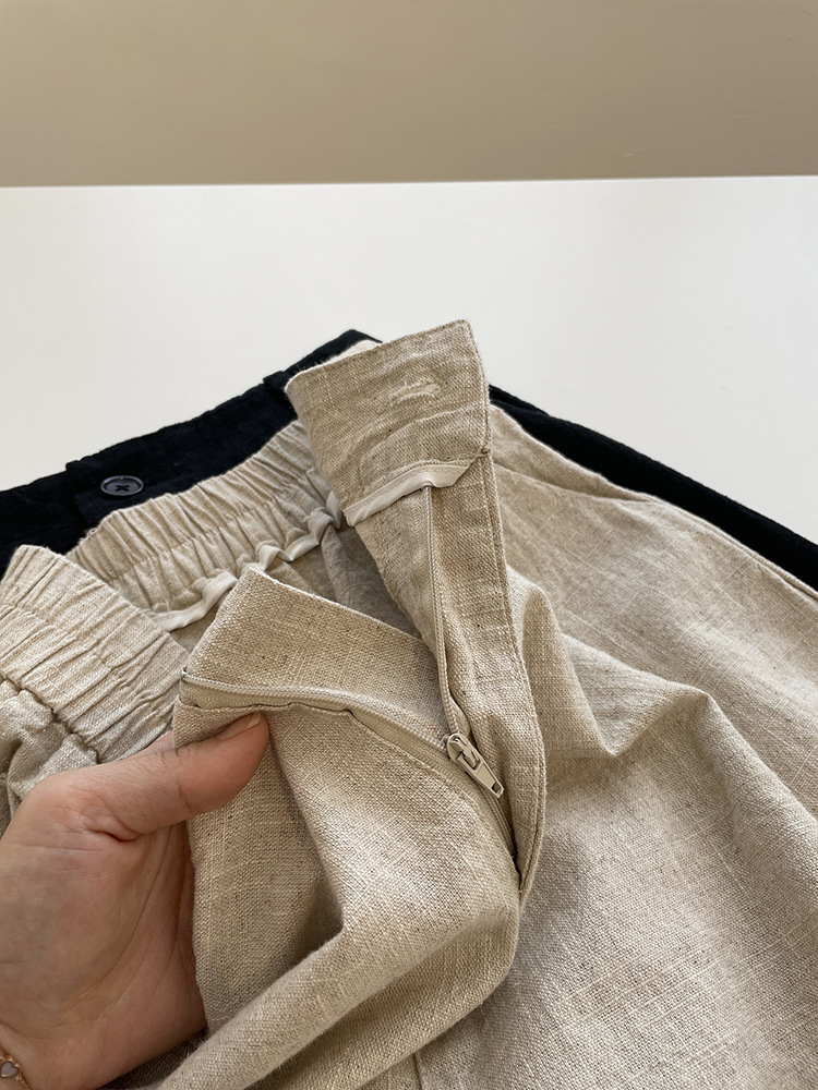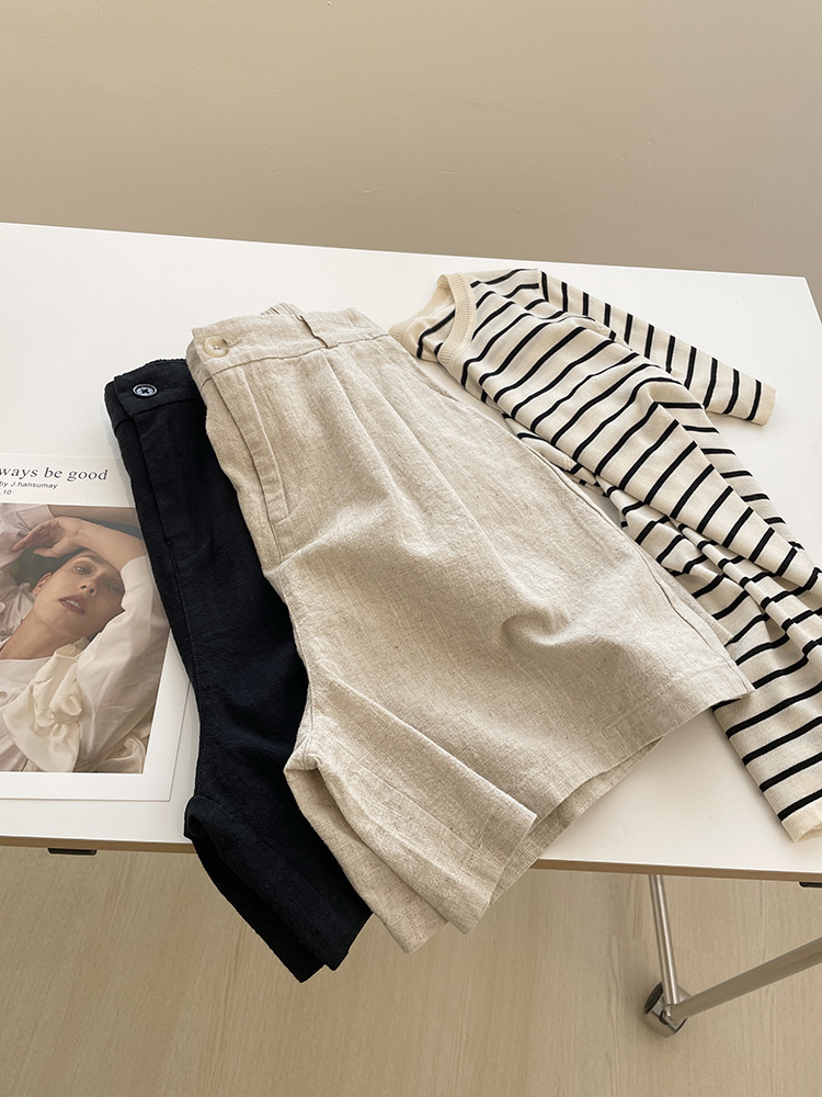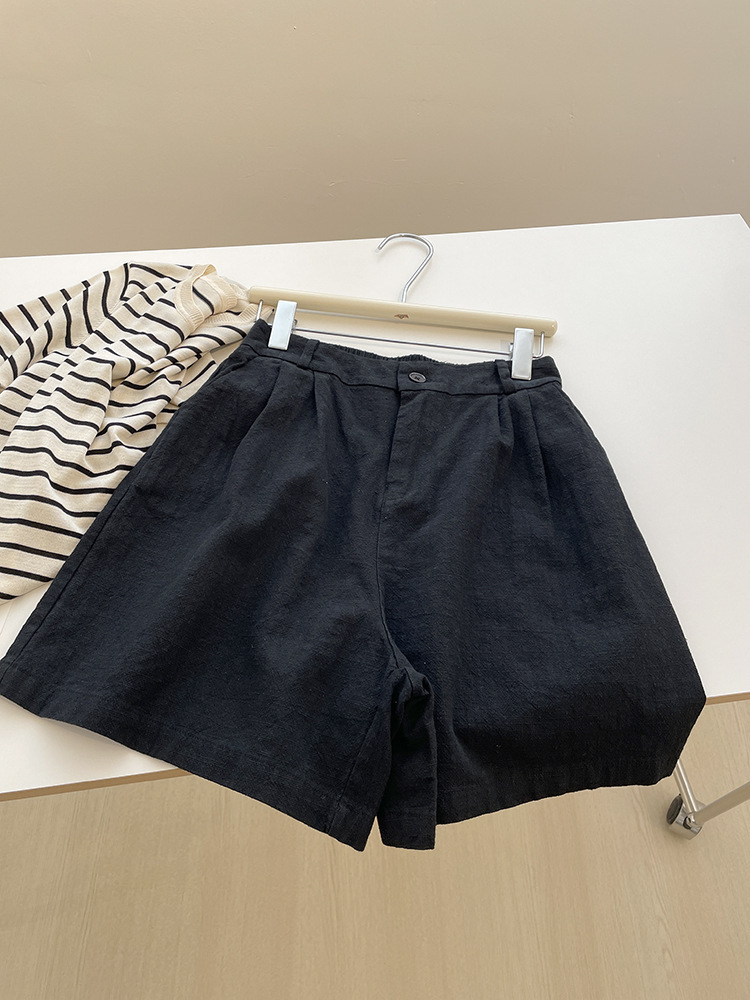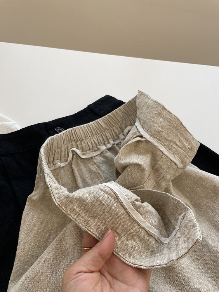 ju显瘦~复古棉麻短裤女!夏季半松紧腰通勤a字阔腿休闲中裤五分裤