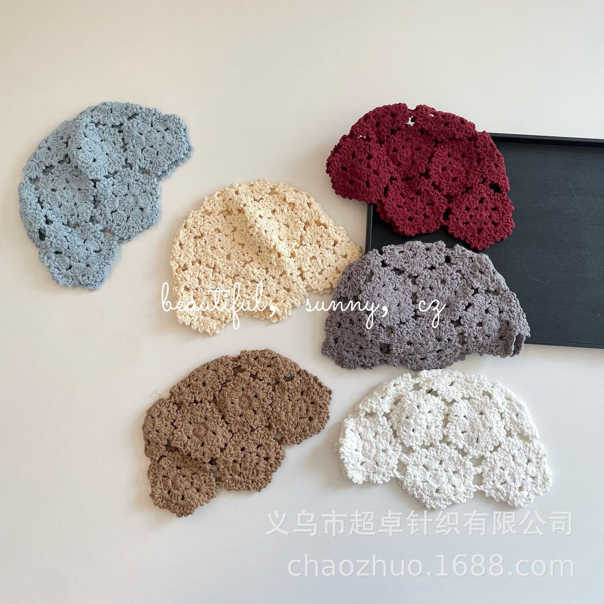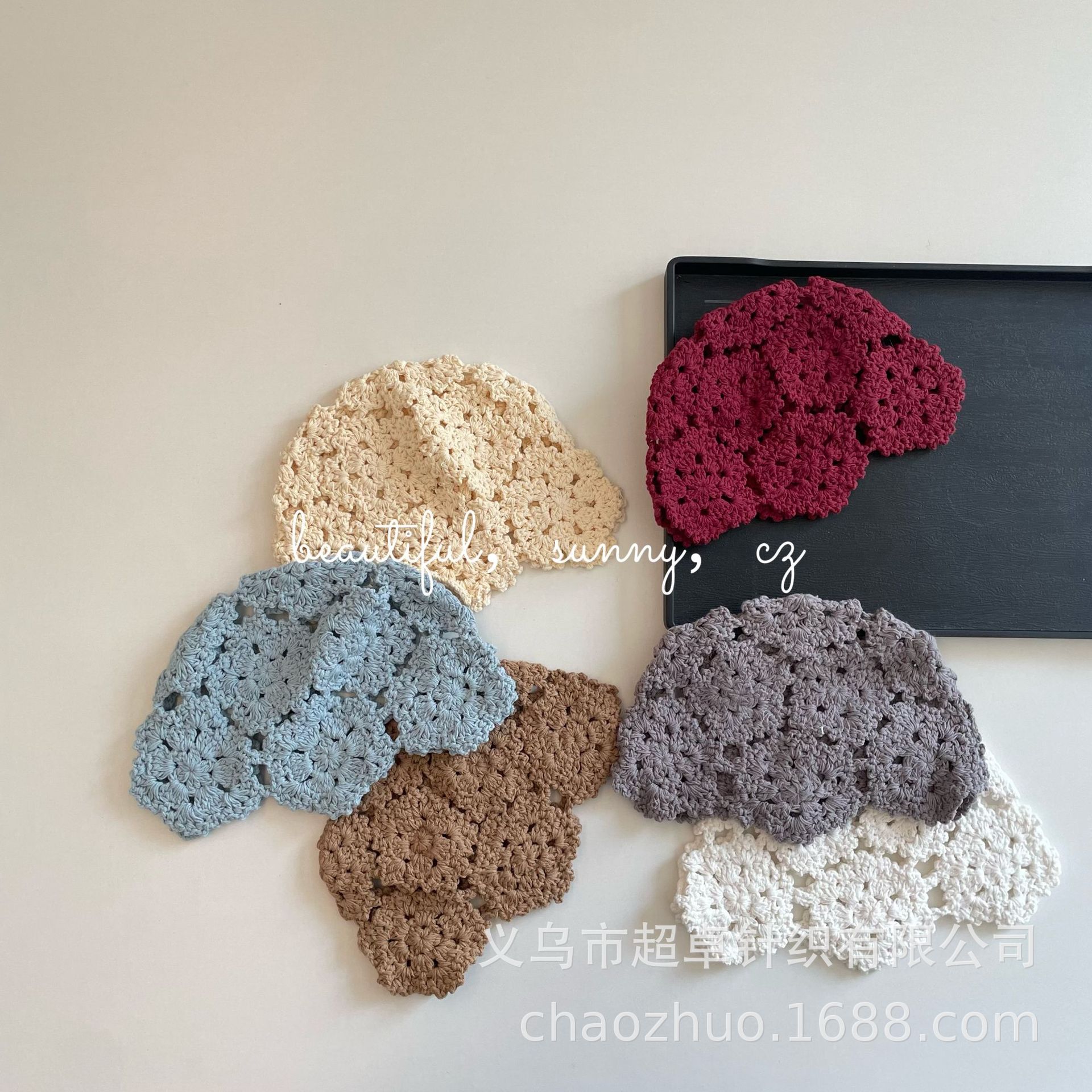 儿童钩针洞洞盆帽