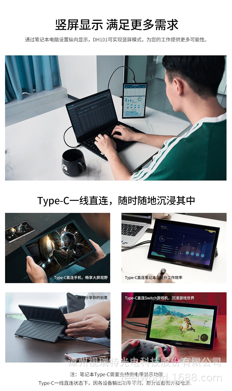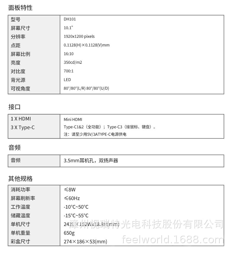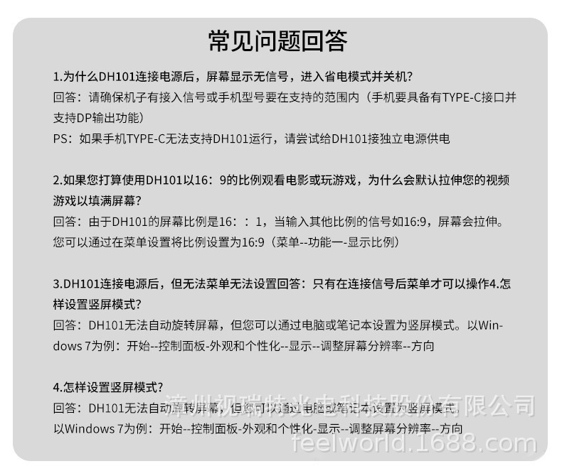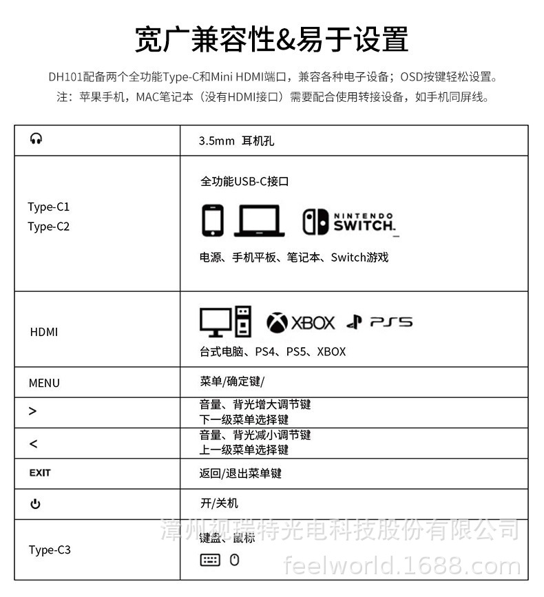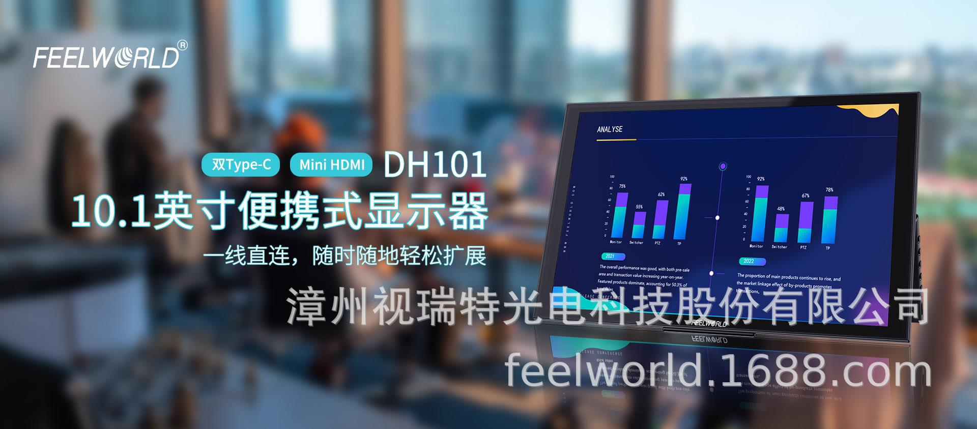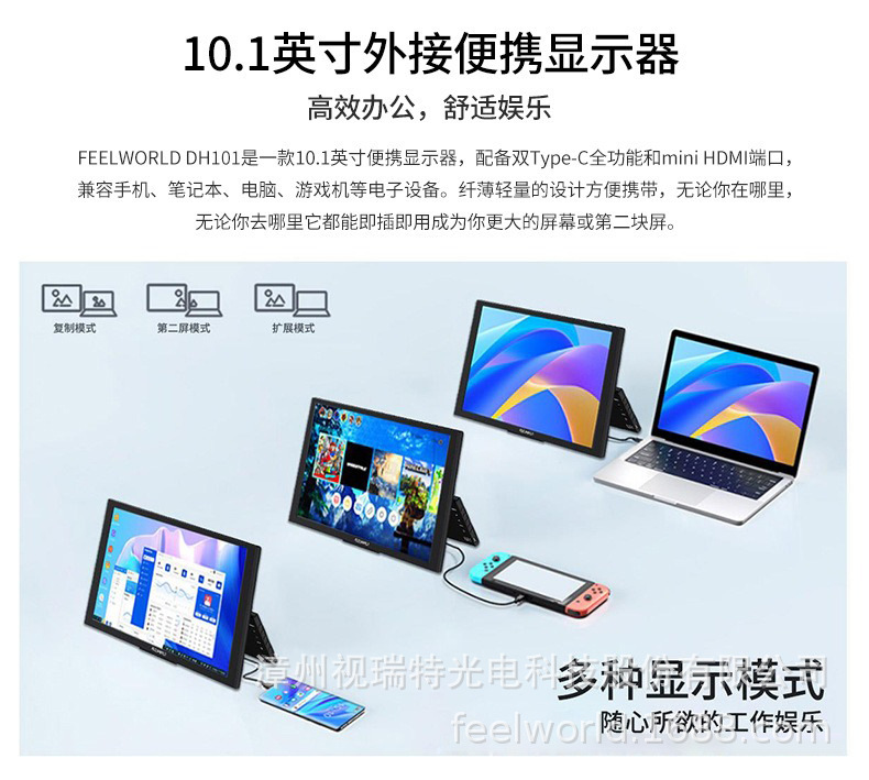 Fulvid FEELWORLD 휴대용 확장 디스플레이 DH101 전체 기능을 갖춘 듀얼 TYPE-C 플러그 앤 플레이