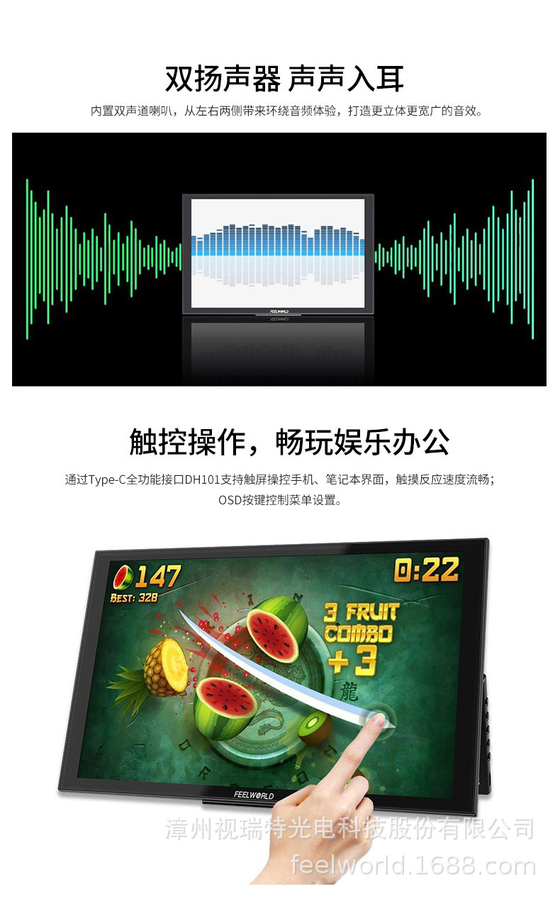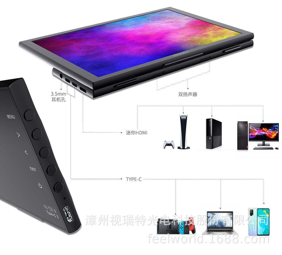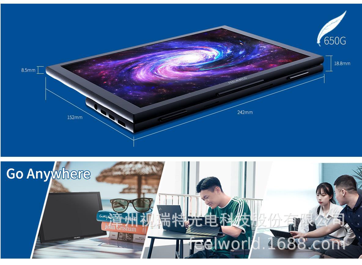 Fulvid FEELWORLD 휴대용 확장 디스플레이 DH101 전체 기능을 갖춘 듀얼 TYPE-C 플러그 앤 플레이스토어 가기