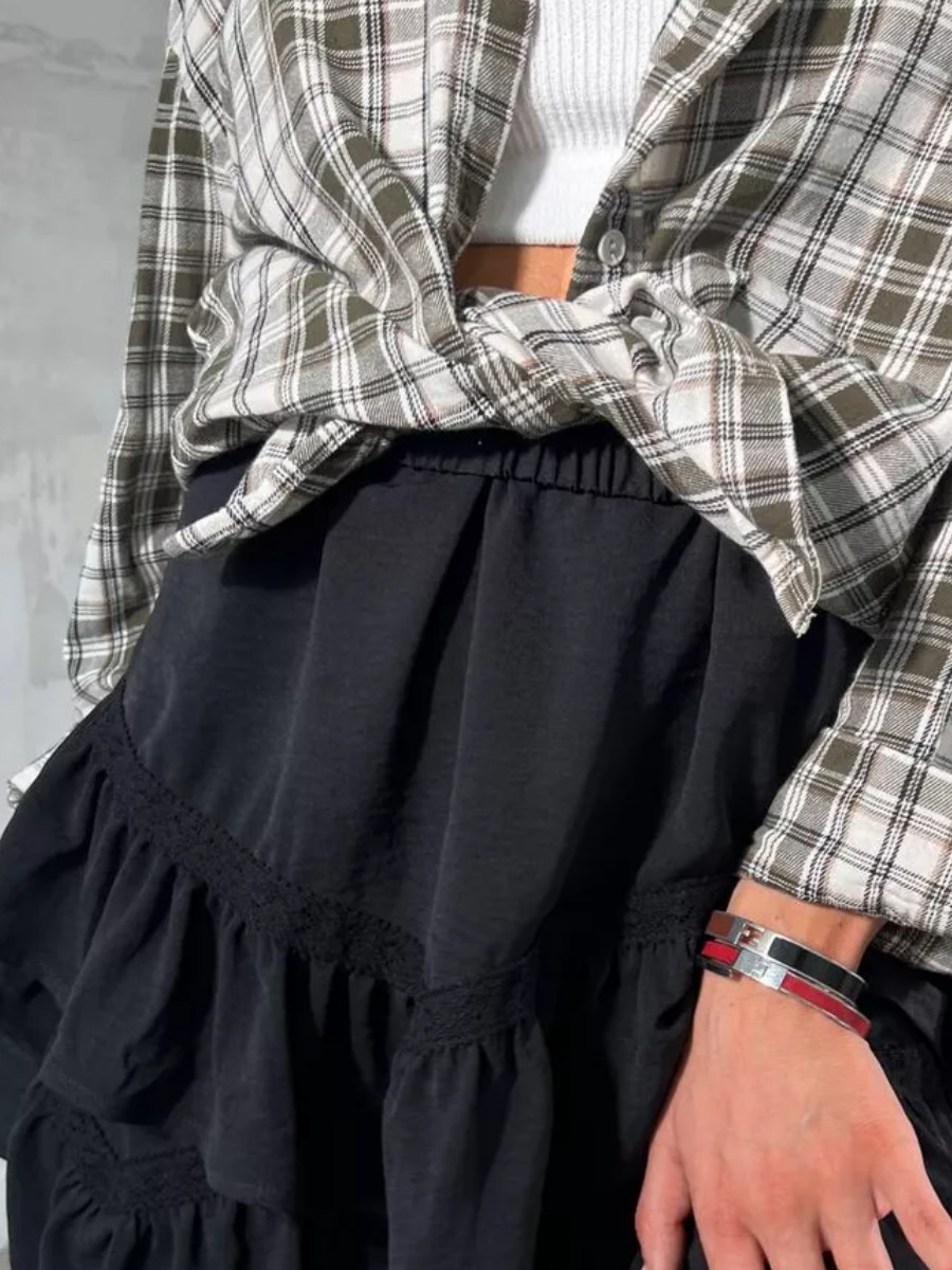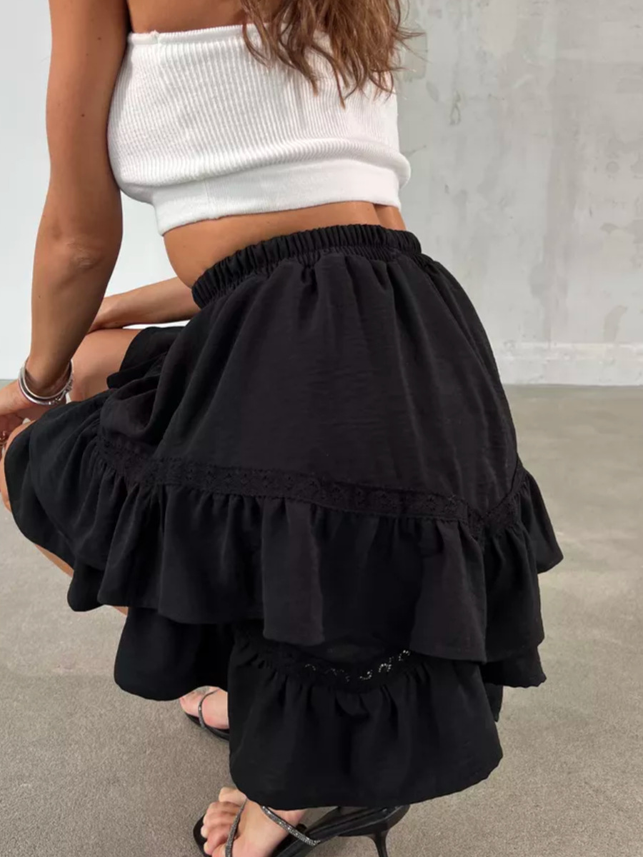 맞춤형 크로스보더 유럽과 미국의 새로운 여름 스타일 불규칙한 외부 주름 맞춤형 다용도 섹시한 레이스 미니 스커트