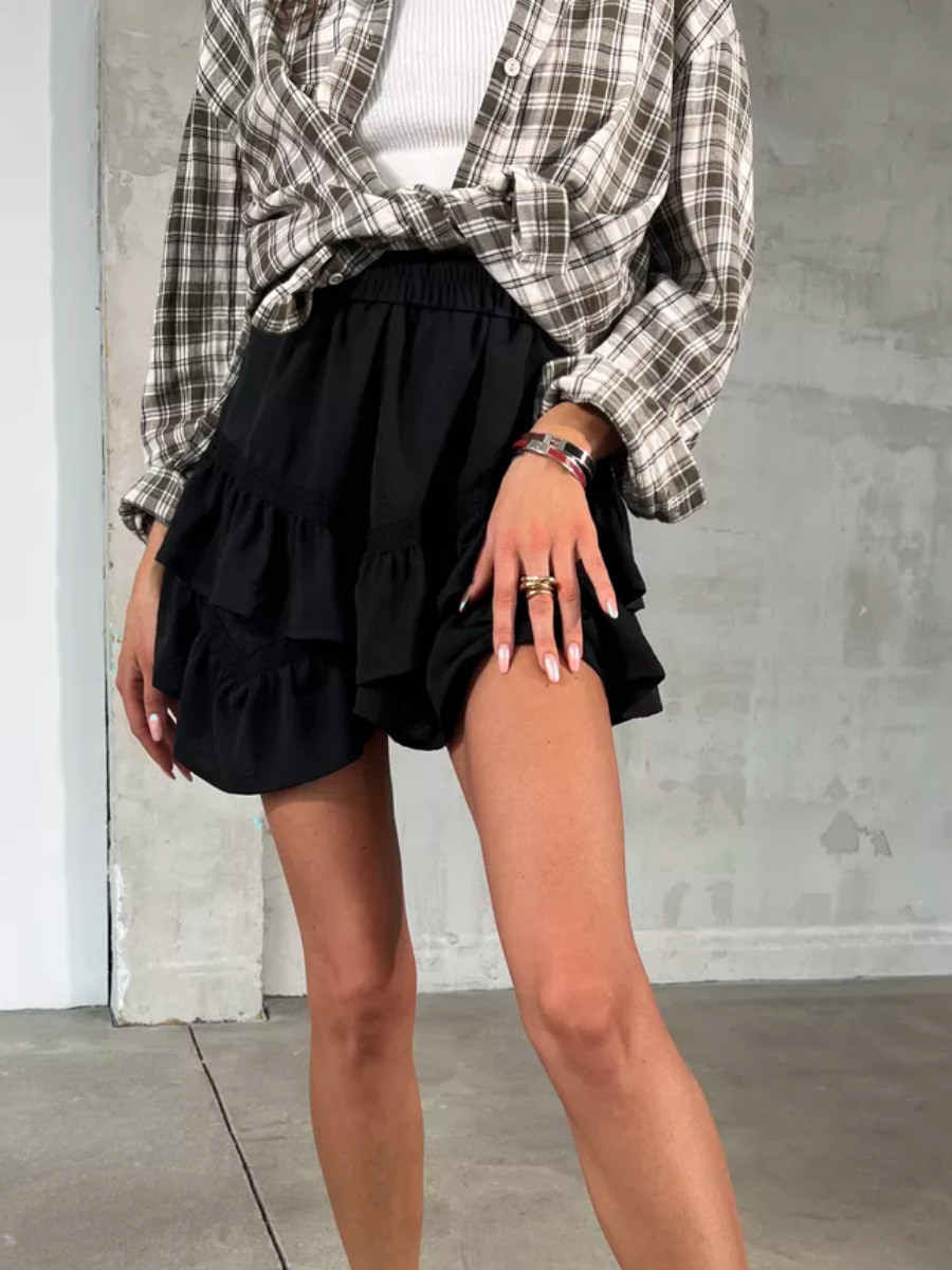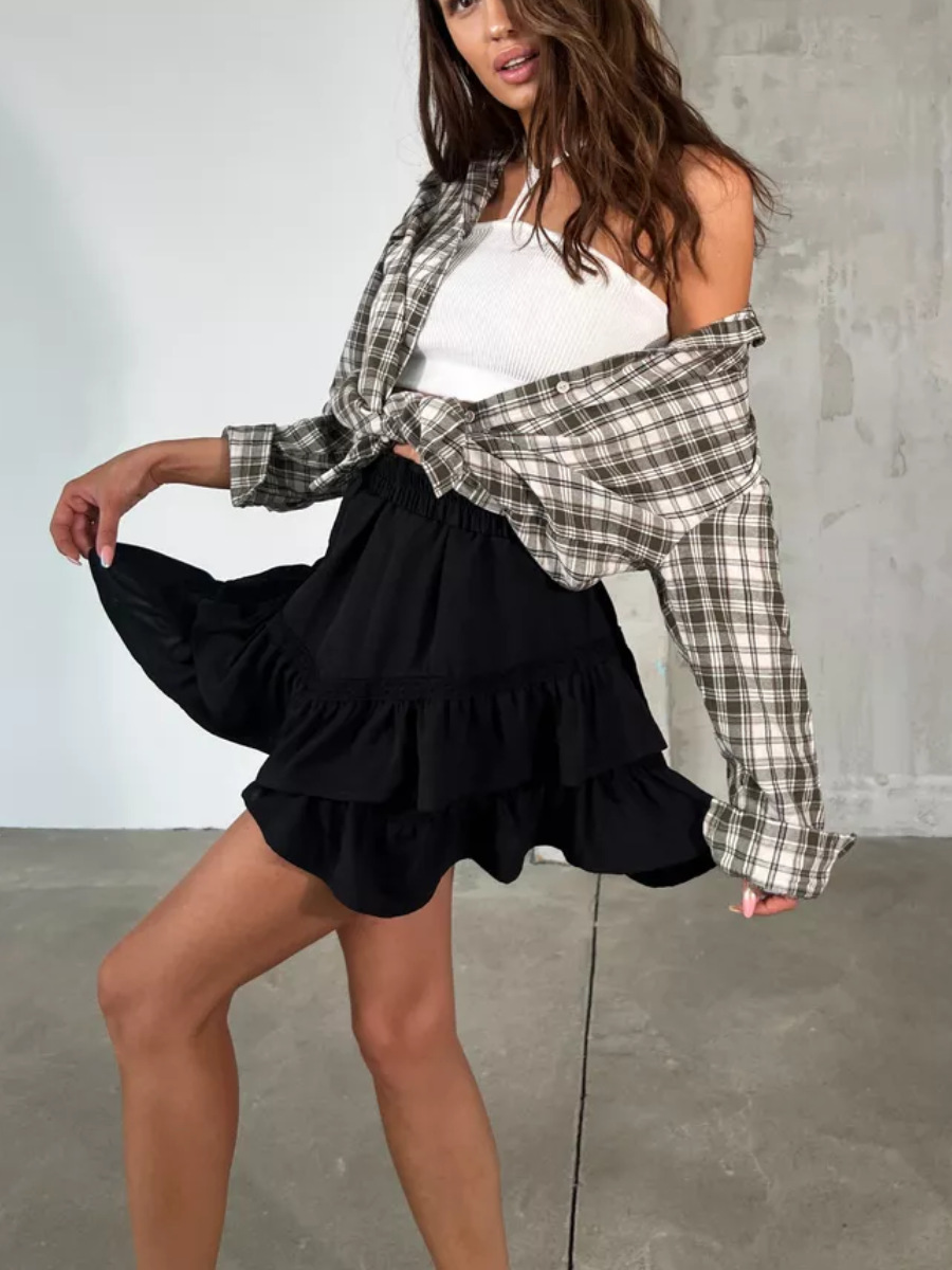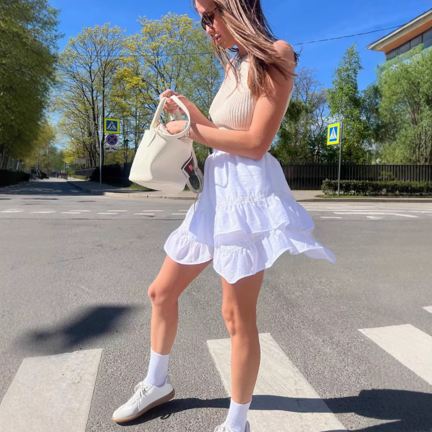 맞춤형 크로스보더 유럽과 미국의 새로운 여름 스타일 불규칙한 외부 주름 맞춤형 다용도 섹시한 레이스 미니 스커트스토어 가기