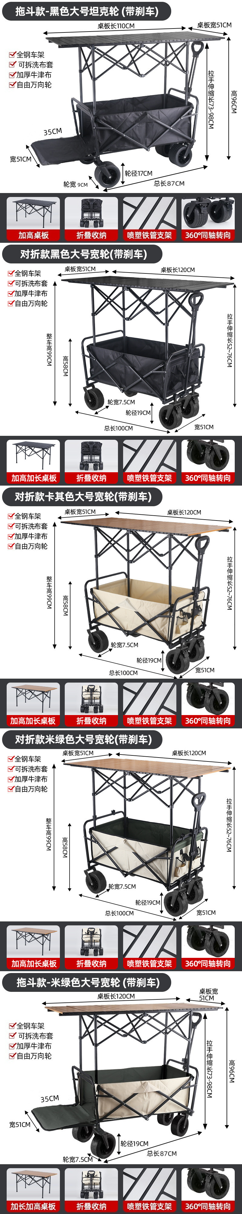 • 블랙 카키 그린 참고 사항 - 상단 구성/오프로드 휠 8inch개 + 확장 및 높이 조절 테이블