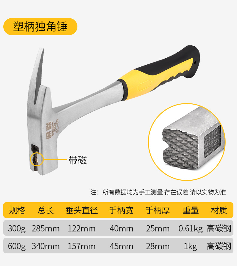 • [업그레이드 모델] 일체형 클로 해머 - 0.5kg 둥근 머리(회전 없음)