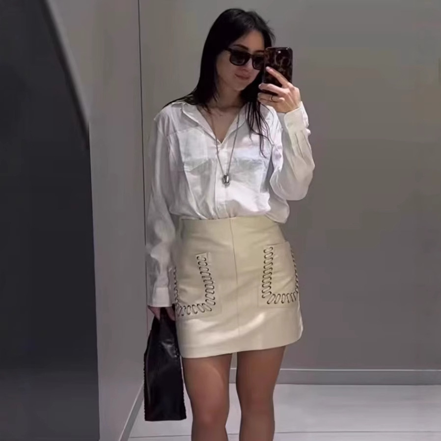 유럽과 미국 스타일의 국경 간 대외 무역 여성 의류 2025 패션 코팅 패브릭 짧은 미니 하이 웨이스트 스커트 1282883스토어 가기