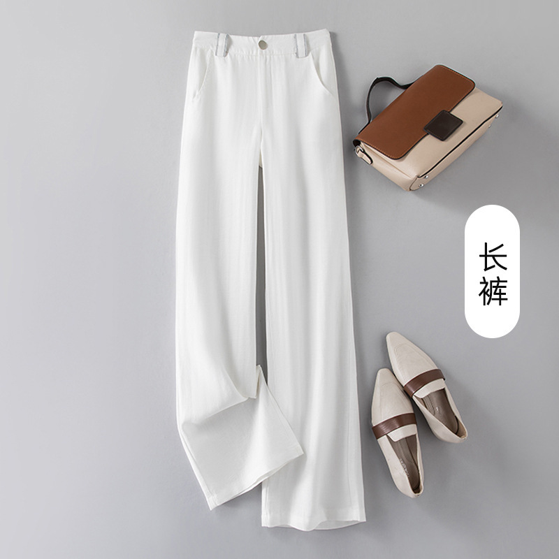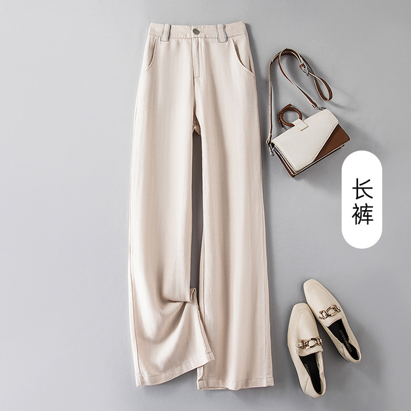 天丝亚麻阔腿裤女夏季薄款2024新款高腰垂感休闲防晒棉麻直筒长裤