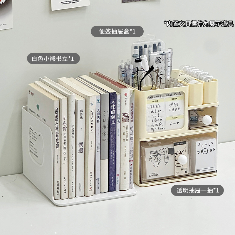 • 펜 홀더 보관함 + 서랍 3개 + 곰 북엔드