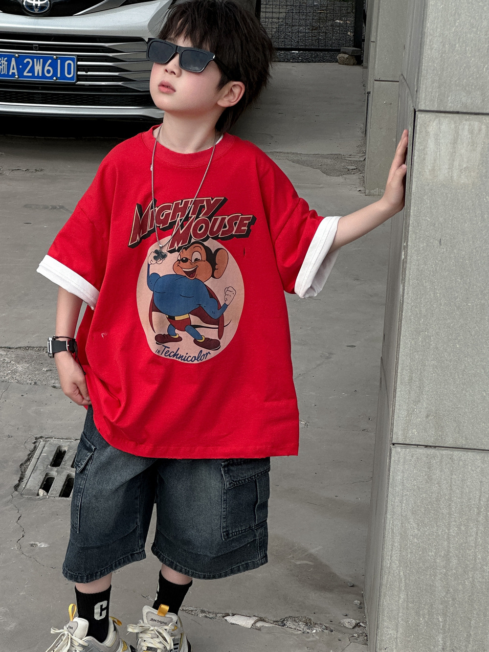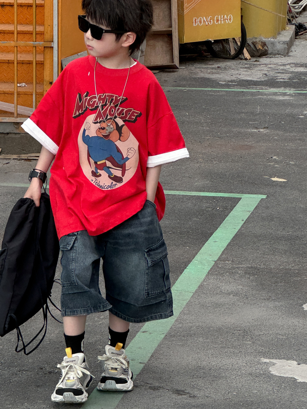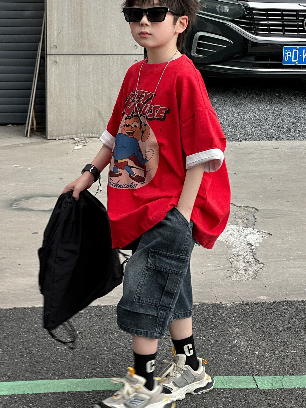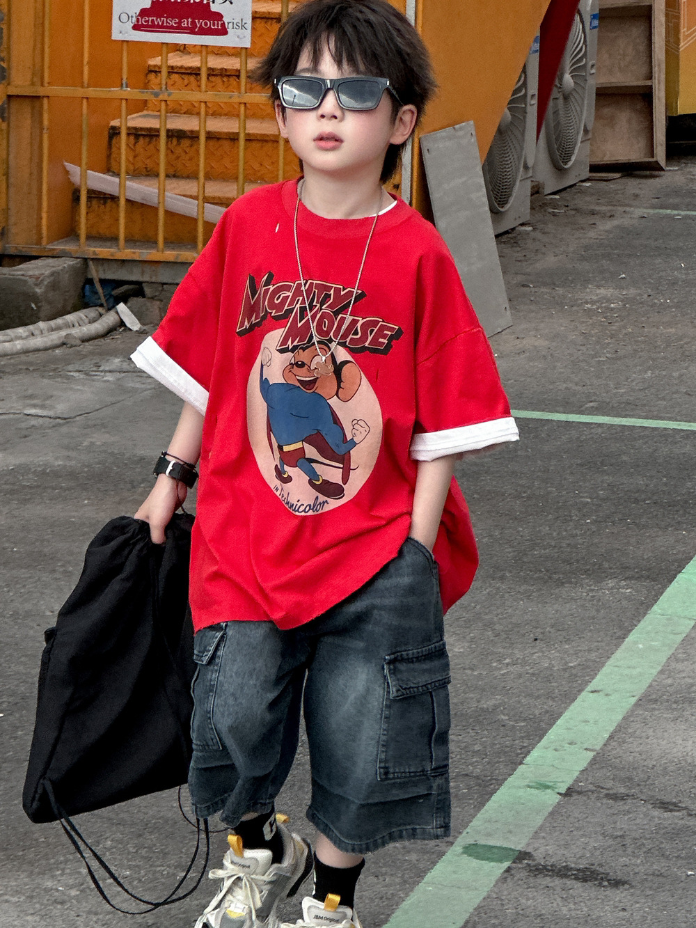 Xiner 2025 여름 새로운 어린이 만화 디지털 인쇄 컷 구멍 반팔 티셔츠 소년 느슨한 올 매치 티셔츠