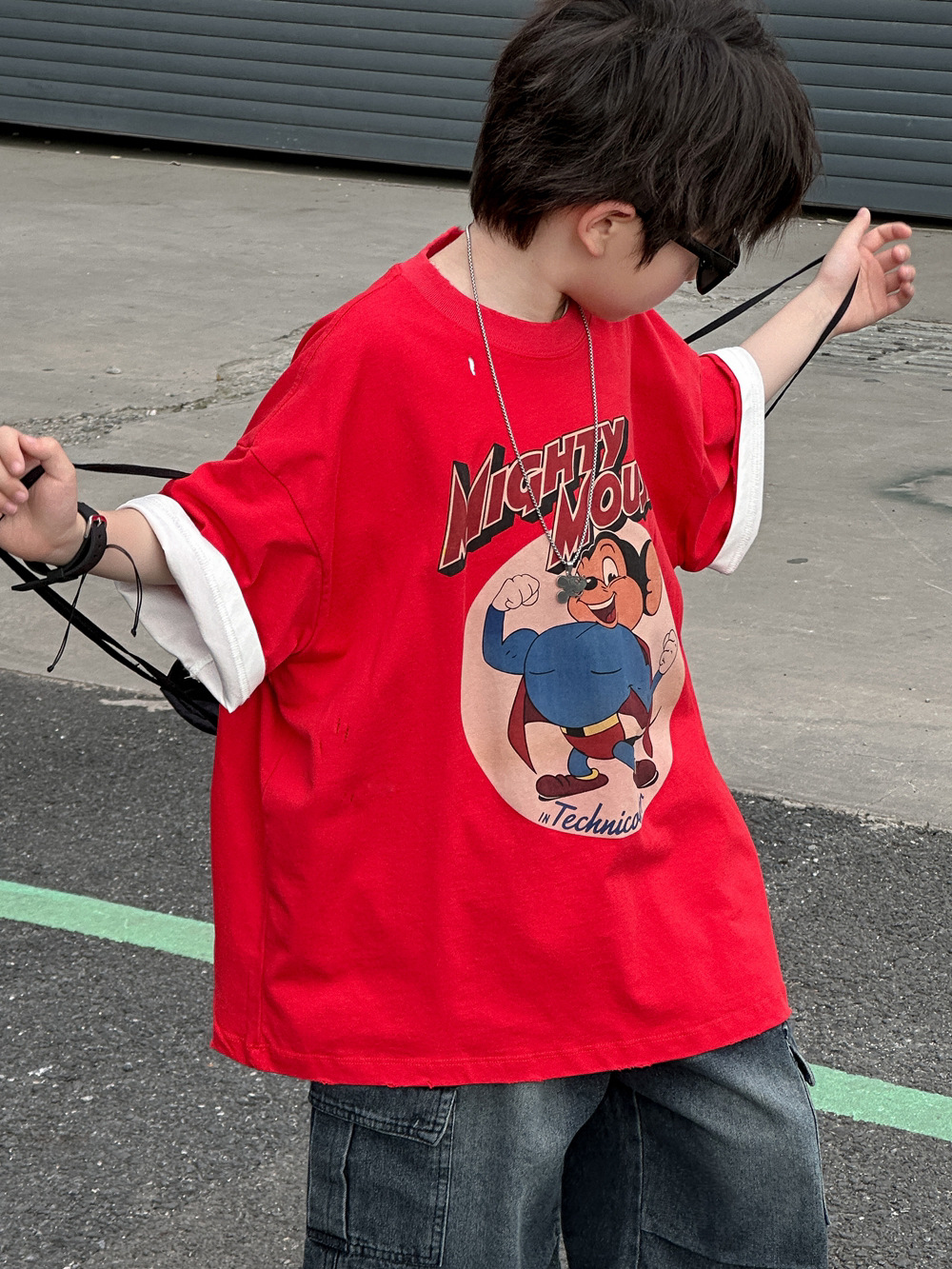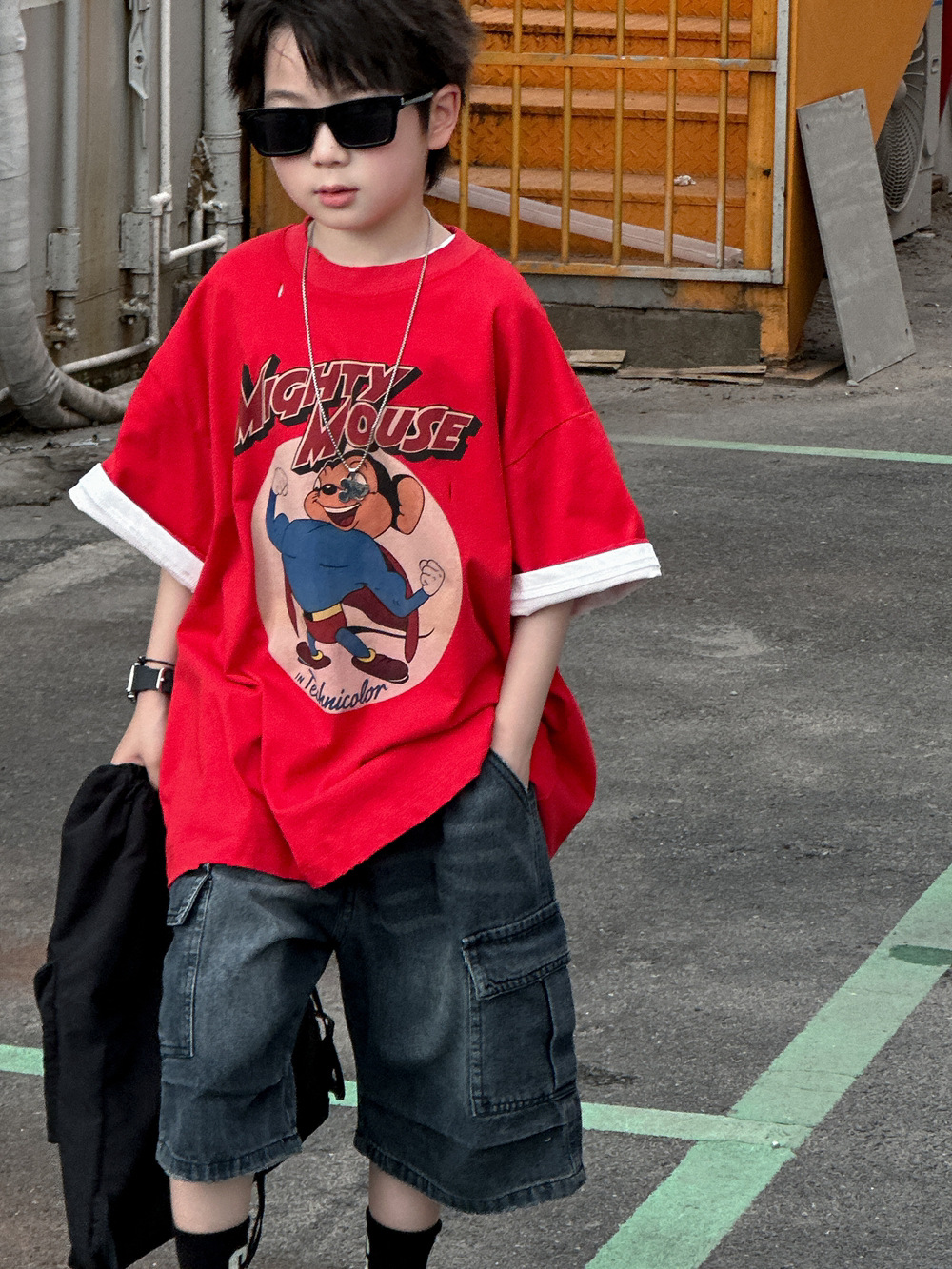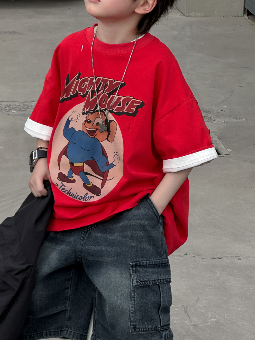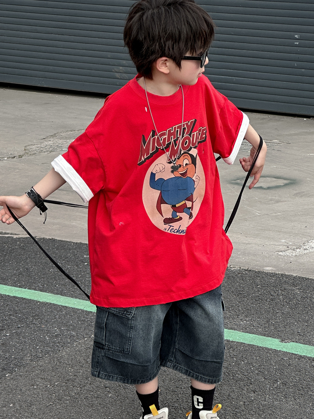 Xiner 2025 여름 새로운 어린이 만화 디지털 인쇄 컷 구멍 반팔 티셔츠 소년 느슨한 올 매치 티셔츠