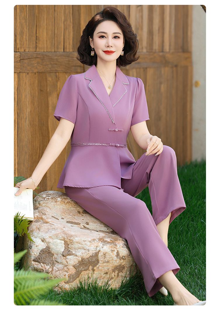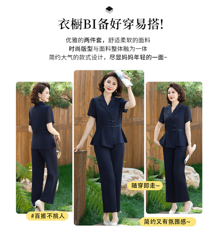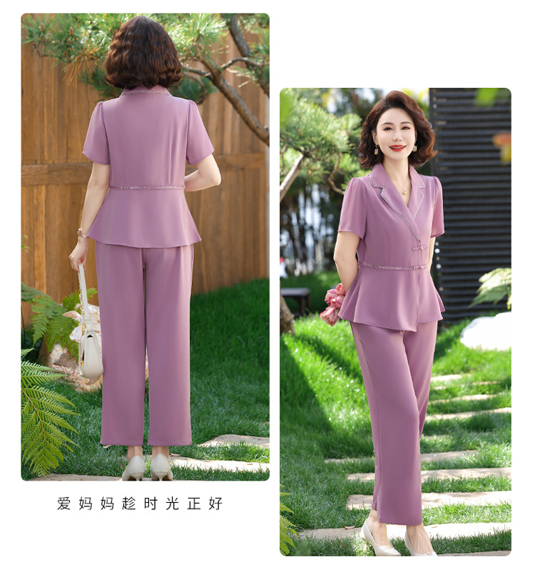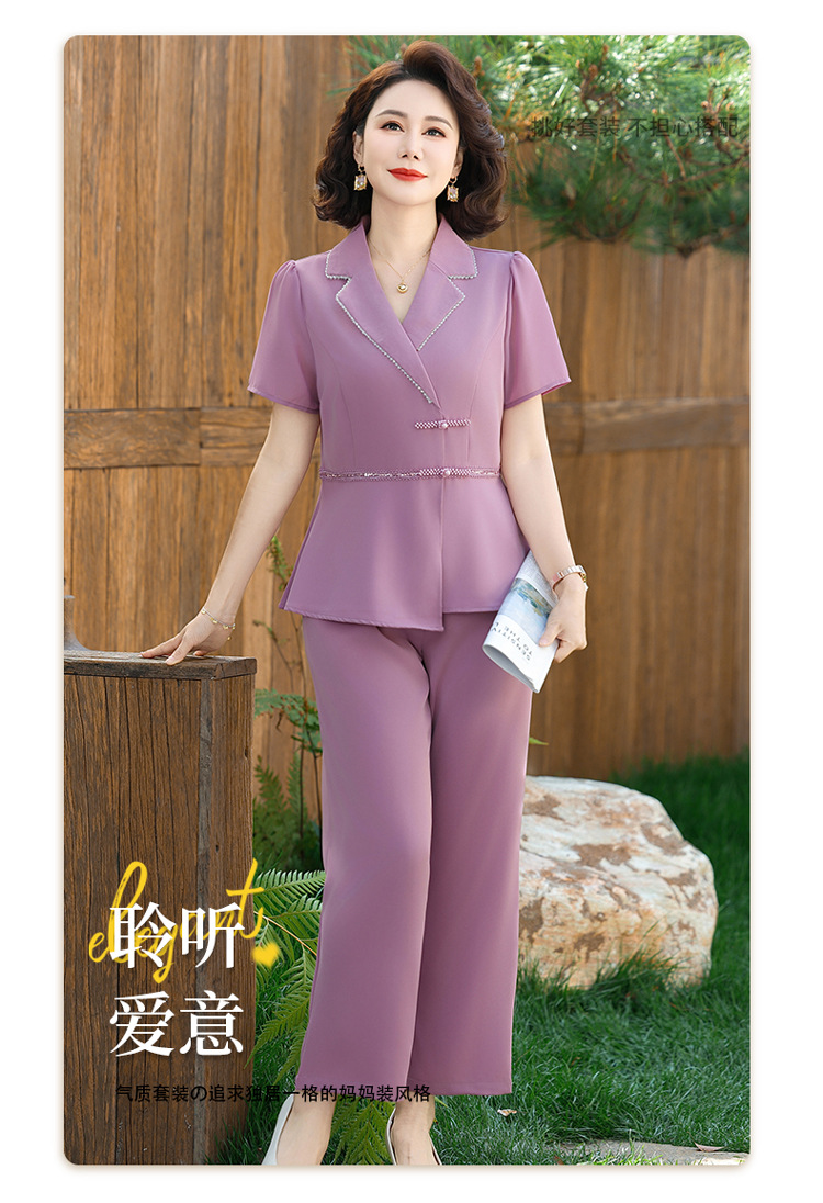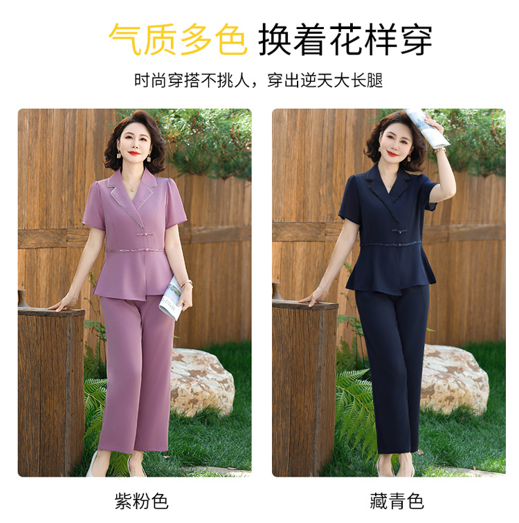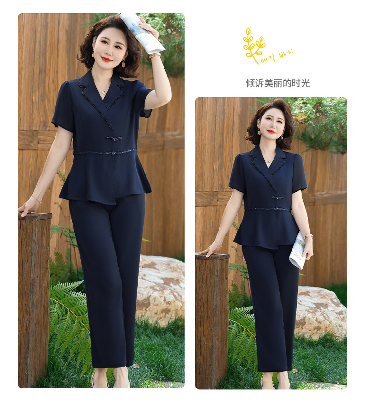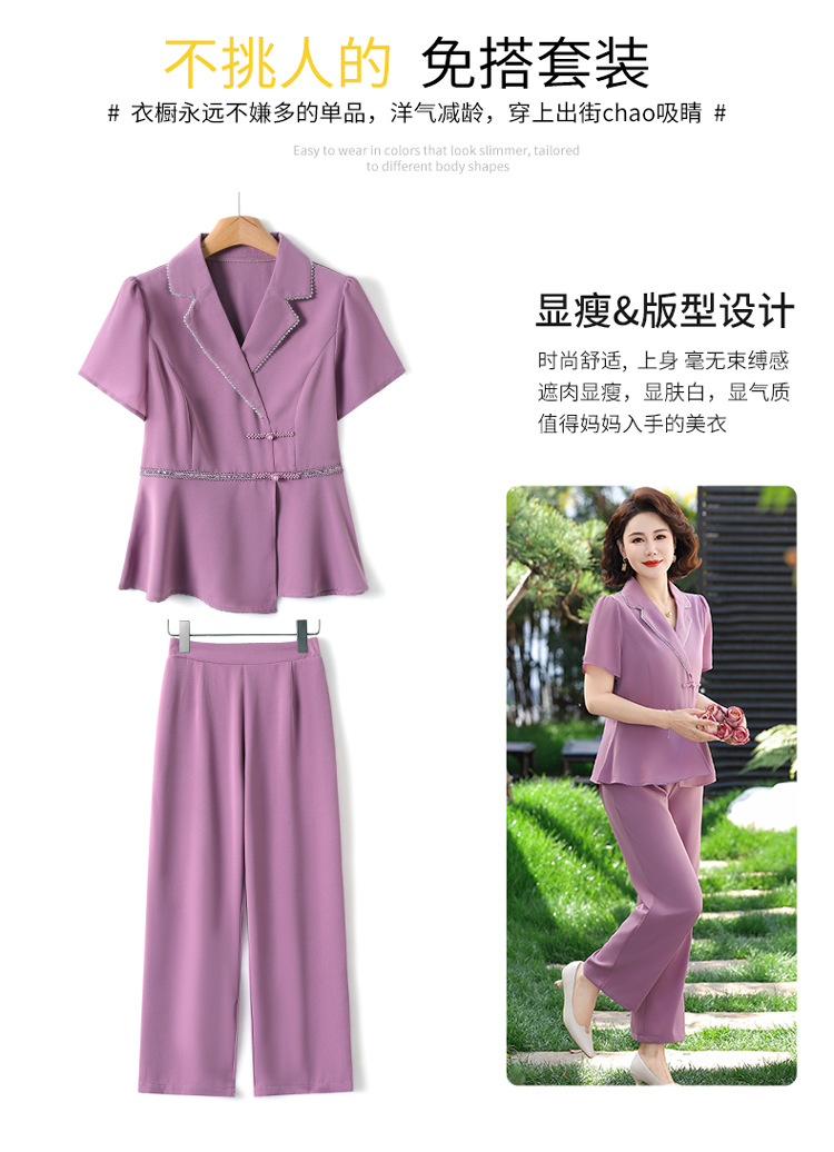 세트 여름 어머니의 새 세트 칼라 반팔 탑 바지 중년 및 노인 여성의 유행 연령 감소 투피스 세트