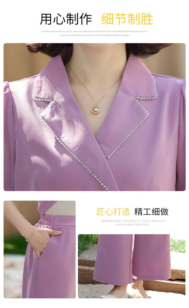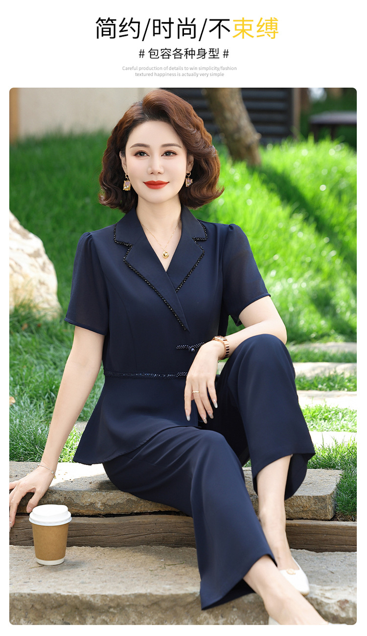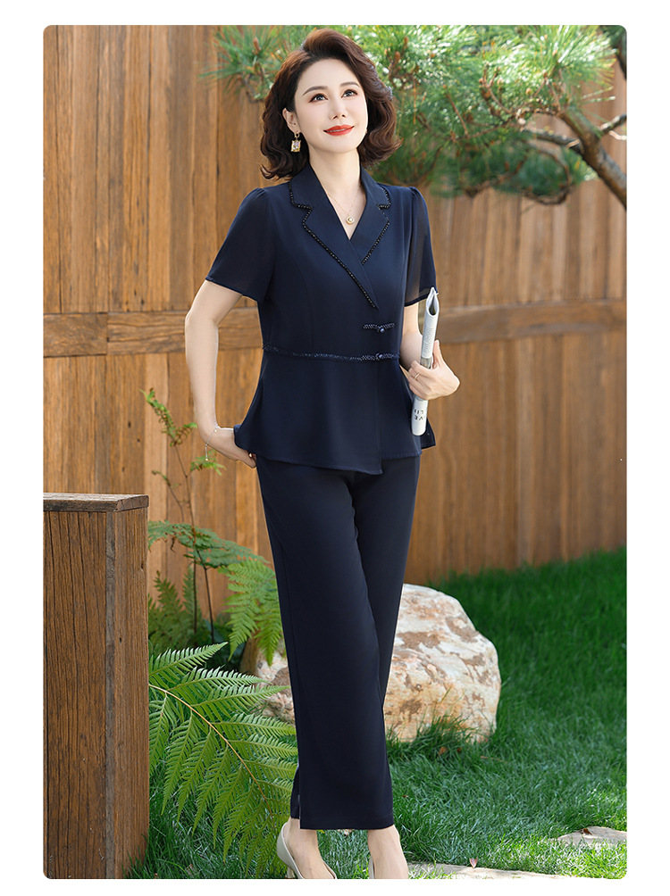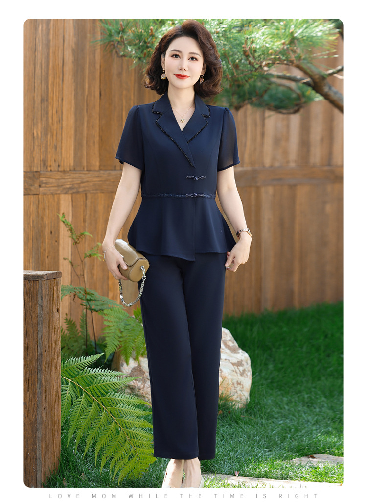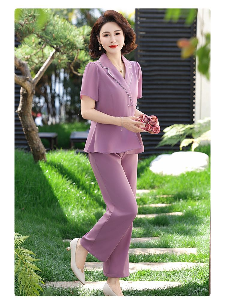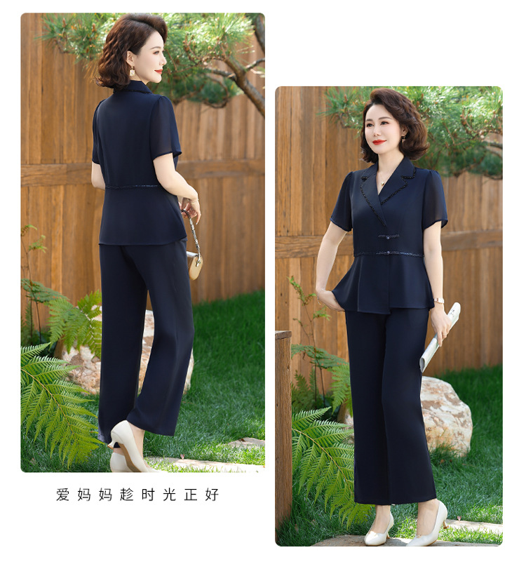 세트 여름 어머니의 새 세트 칼라 반팔 탑 바지 중년 및 노인 여성의 유행 연령 감소 투피스 세트