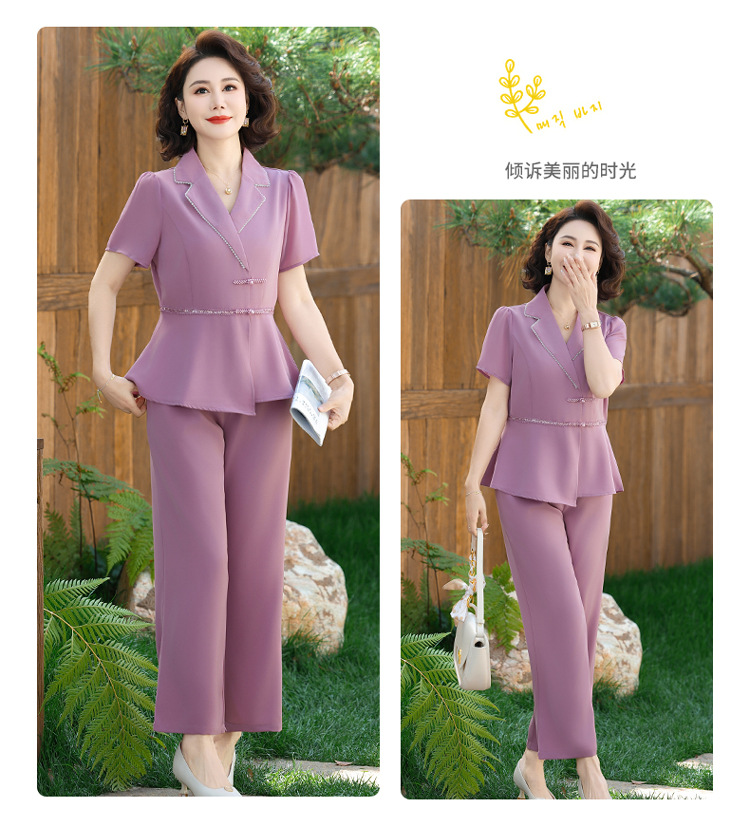 세트 여름 어머니의 새 세트 칼라 반팔 탑 바지 중년 및 노인 여성의 유행 연령 감소 투피스 세트스토어 가기