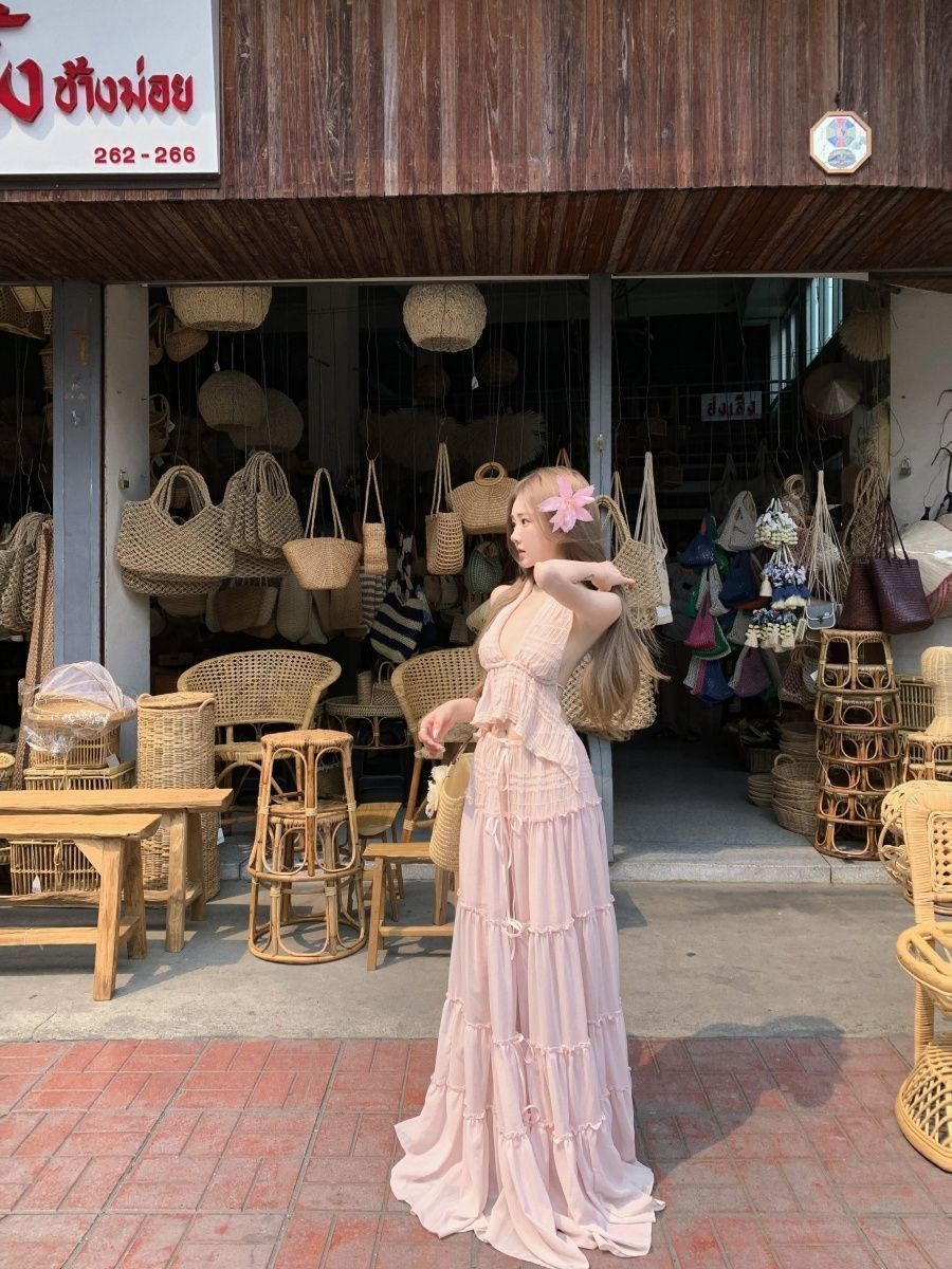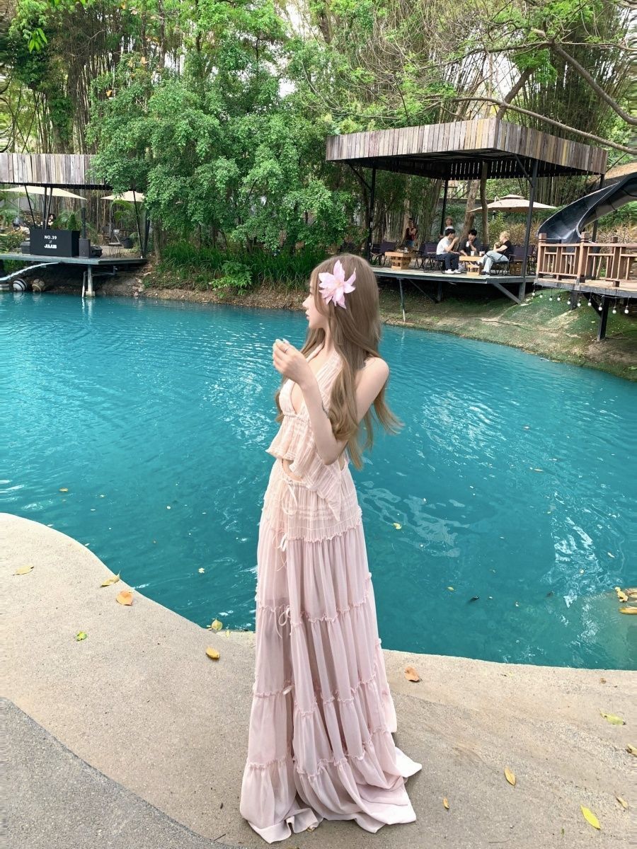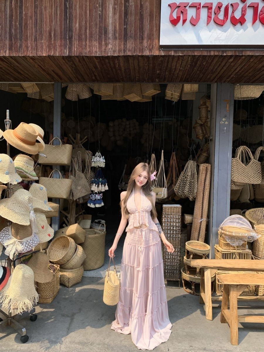 태국 해변 휴가복, 순수하고 섹시한 등이 없는 홀터넥 시스루 하프 길이 3피스 스플릿 수영복 여성용스토어 가기