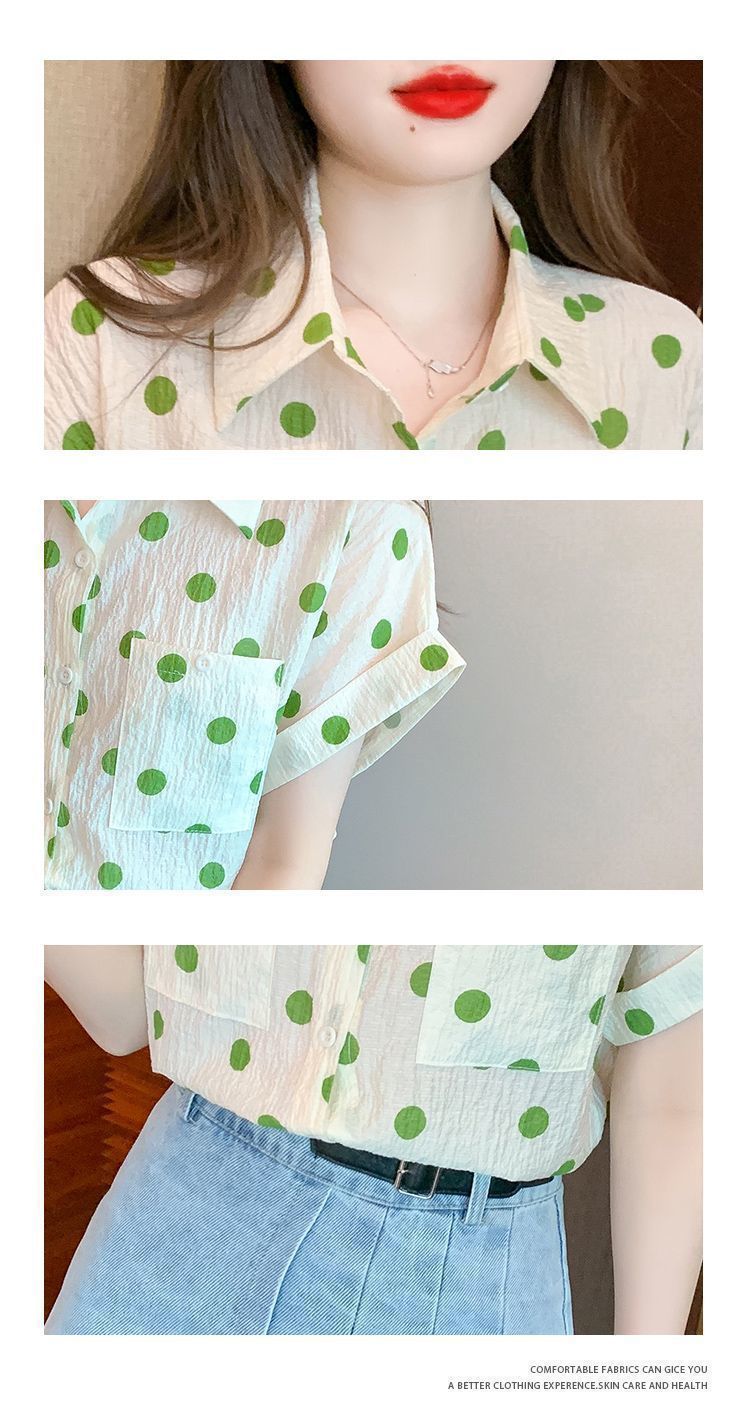 한국 스타일 우아한 폴로 도트 칼라 짧은 소매 쉬폰 셔츠 여성 여름 새로운 스타일 여성 셔츠 탑스토어 가기