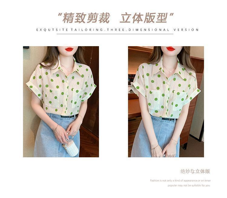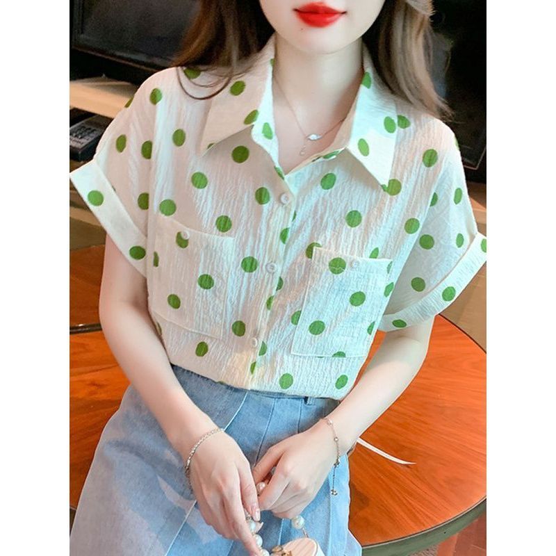 한국 스타일 우아한 폴로 도트 칼라 짧은 소매 쉬폰 셔츠 여성 여름 새로운 스타일 여성 셔츠 탑