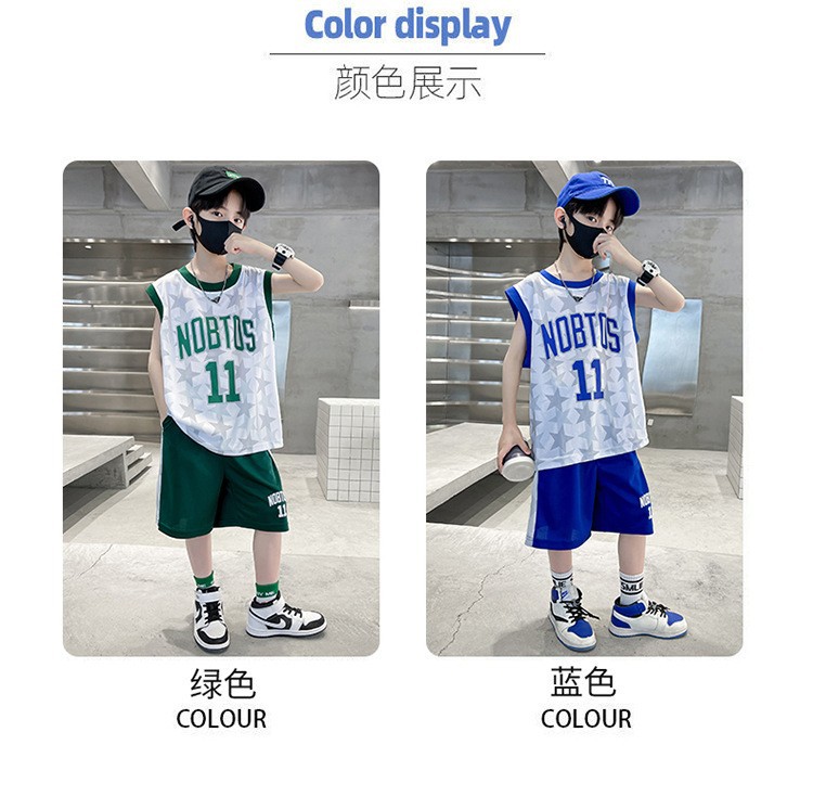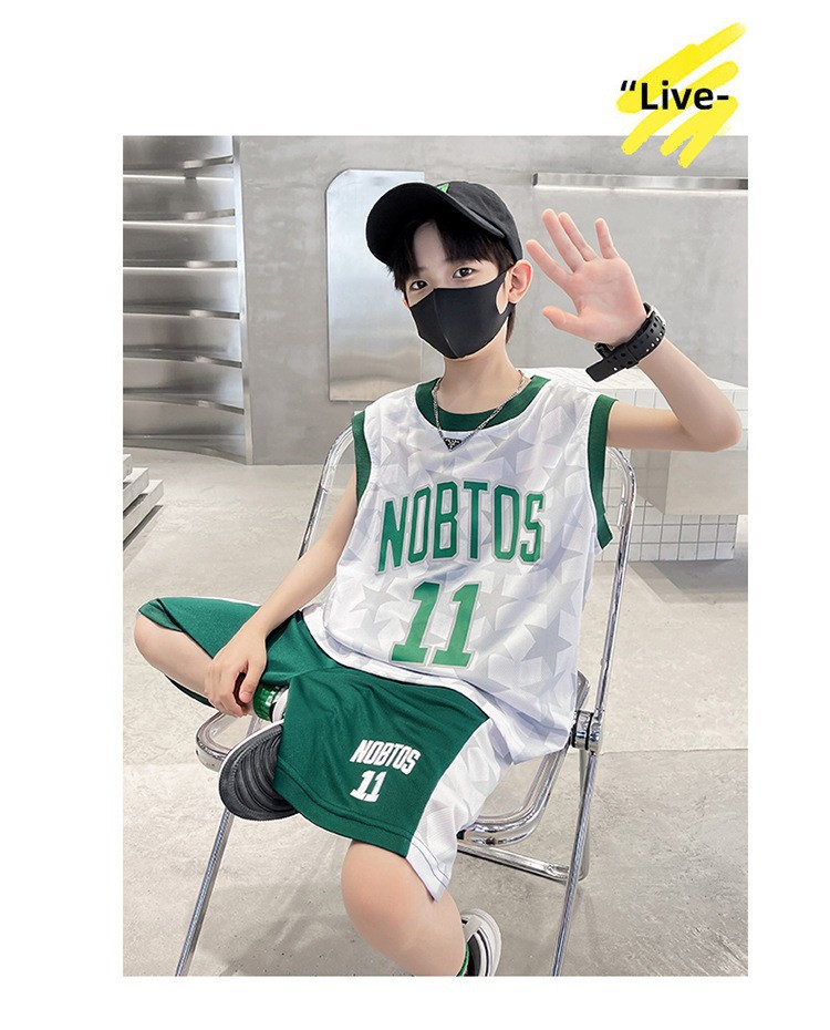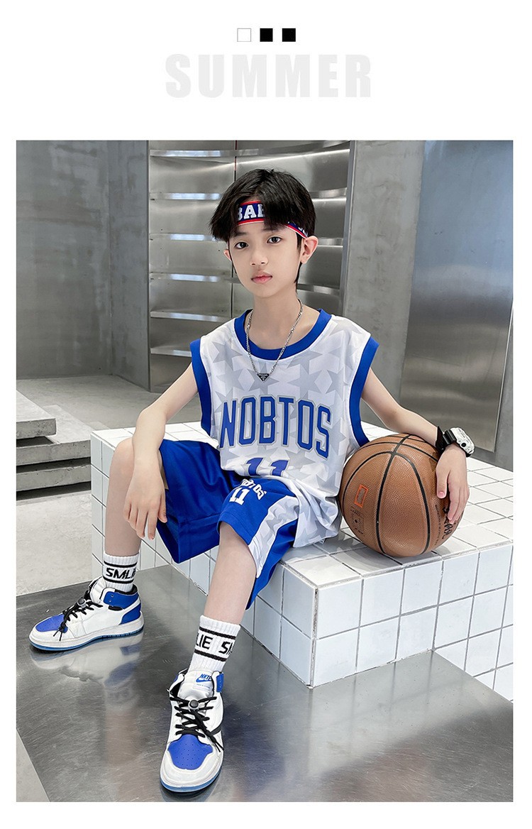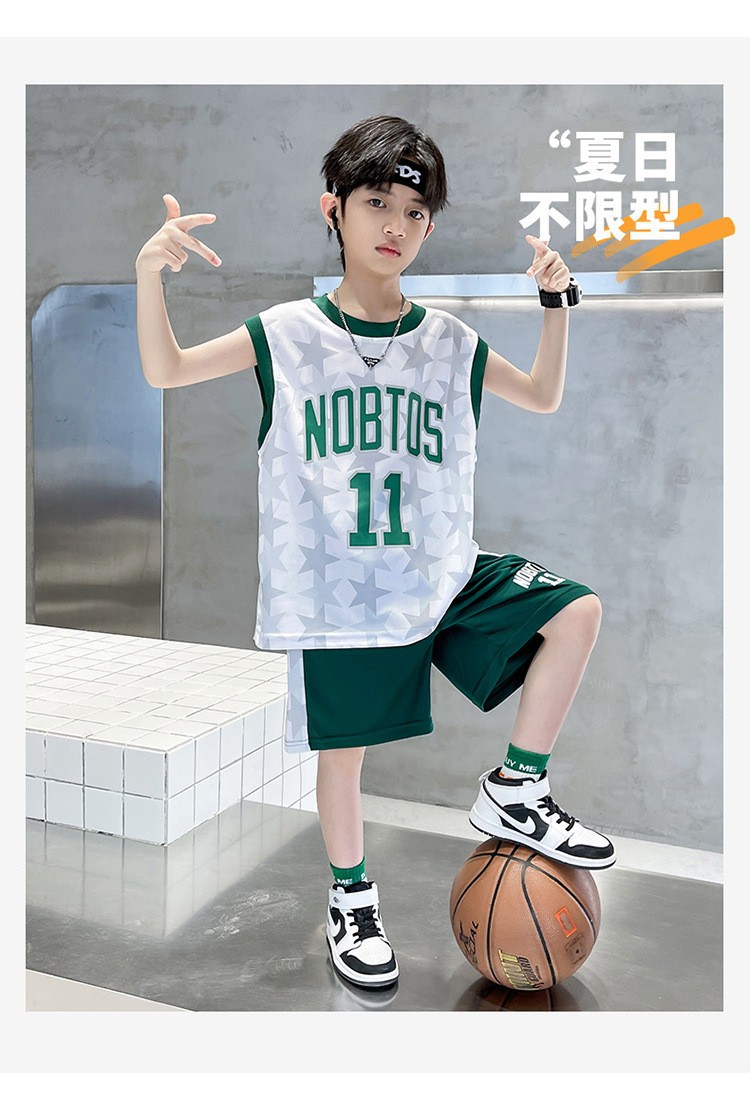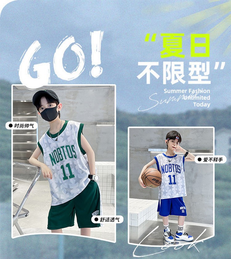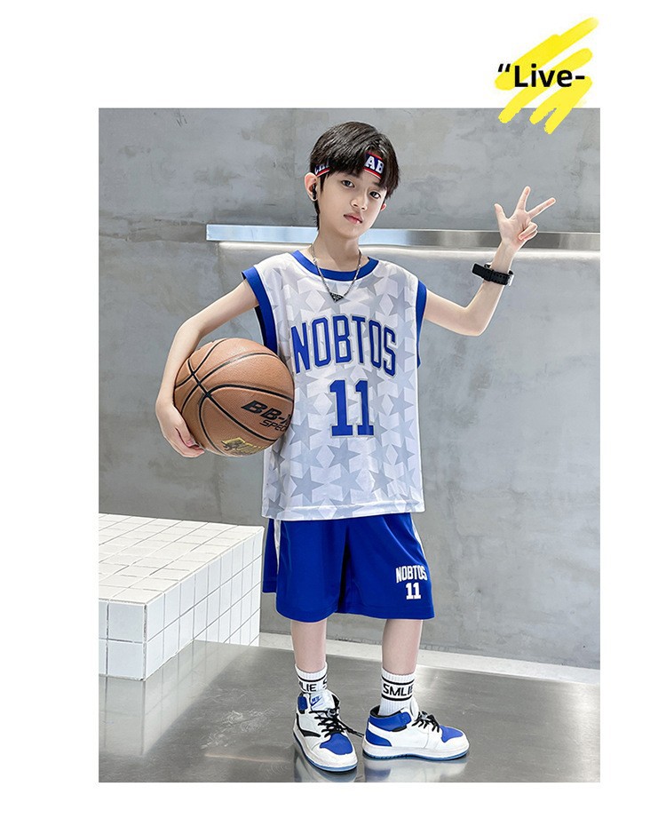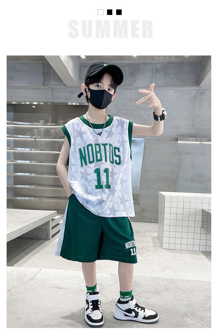 2025 여름 어린이 유행 유행 인쇄 농구 세트 큰 소년의 잘 생긴 조끼 반바지 스포츠 투피스 세트스토어 가기
