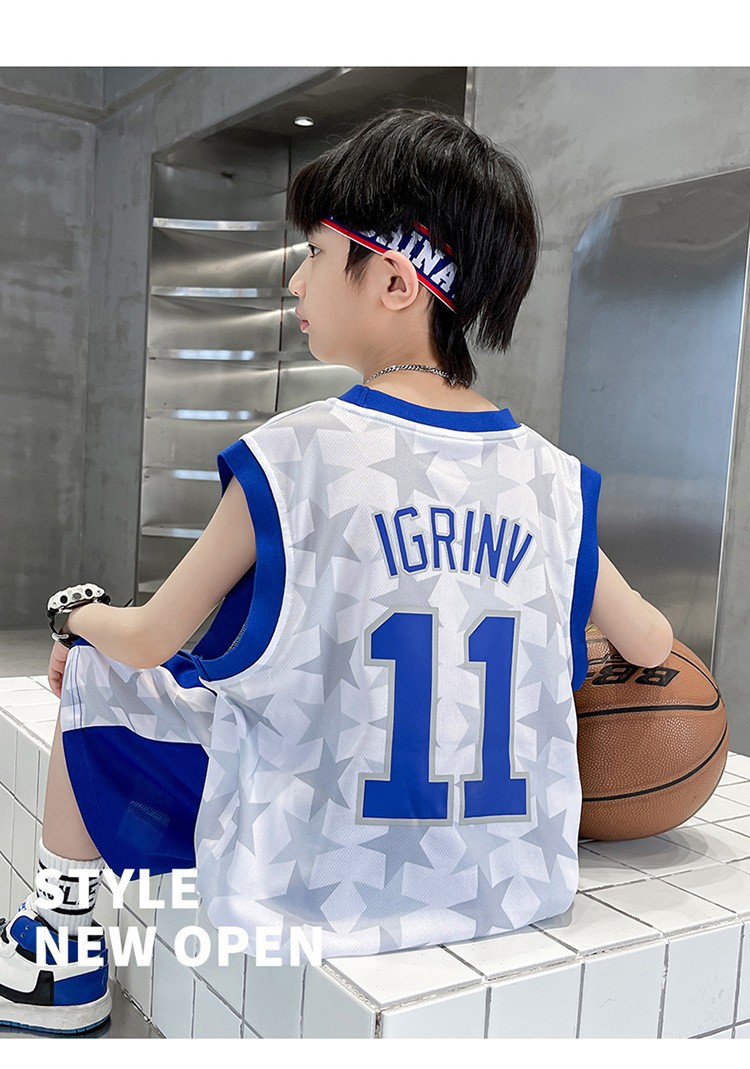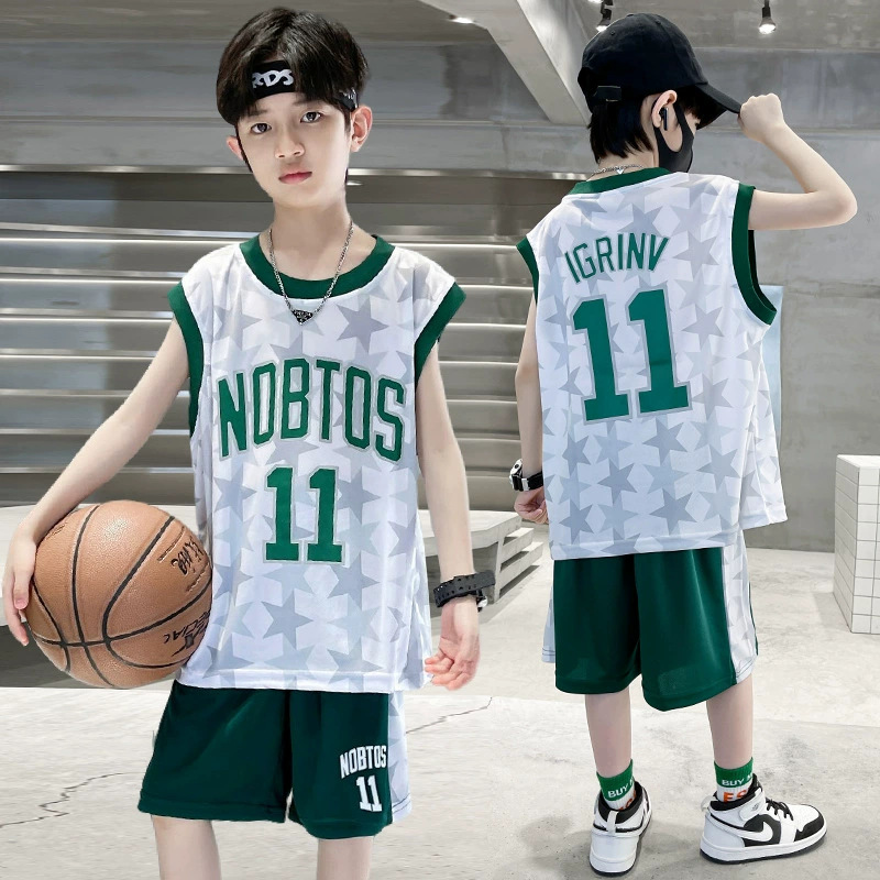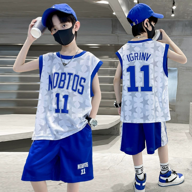 2025 여름 어린이 유행 유행 인쇄 농구 세트 큰 소년의 잘 생긴 조끼 반바지 스포츠 투피스 세트