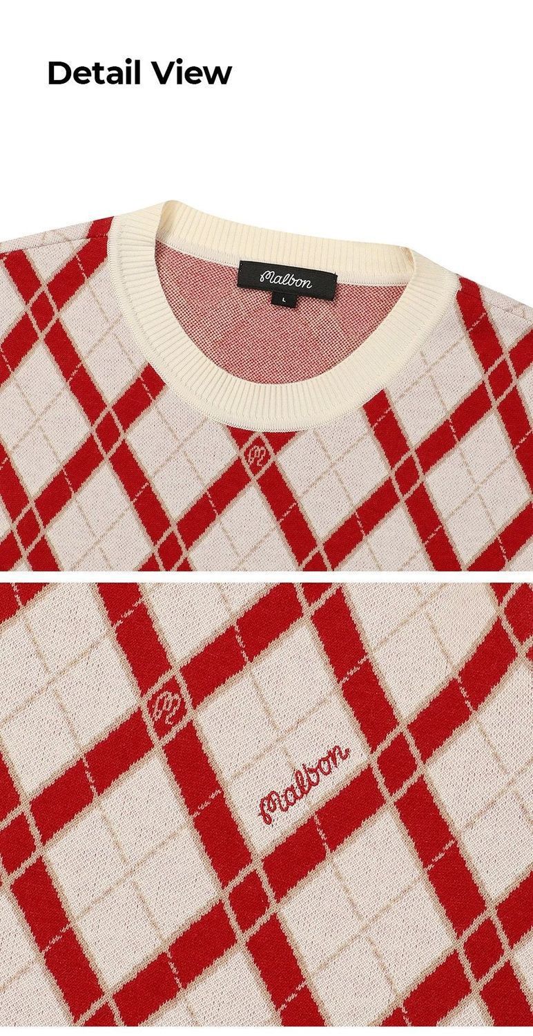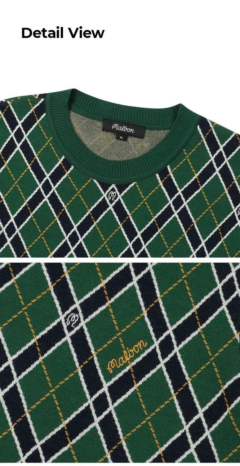24 가을 겨울 한국 골프웨어 남성 GOLF 다이아몬드 컬러 라운드 넥 풀오버 긴팔 스웨터스토어 가기