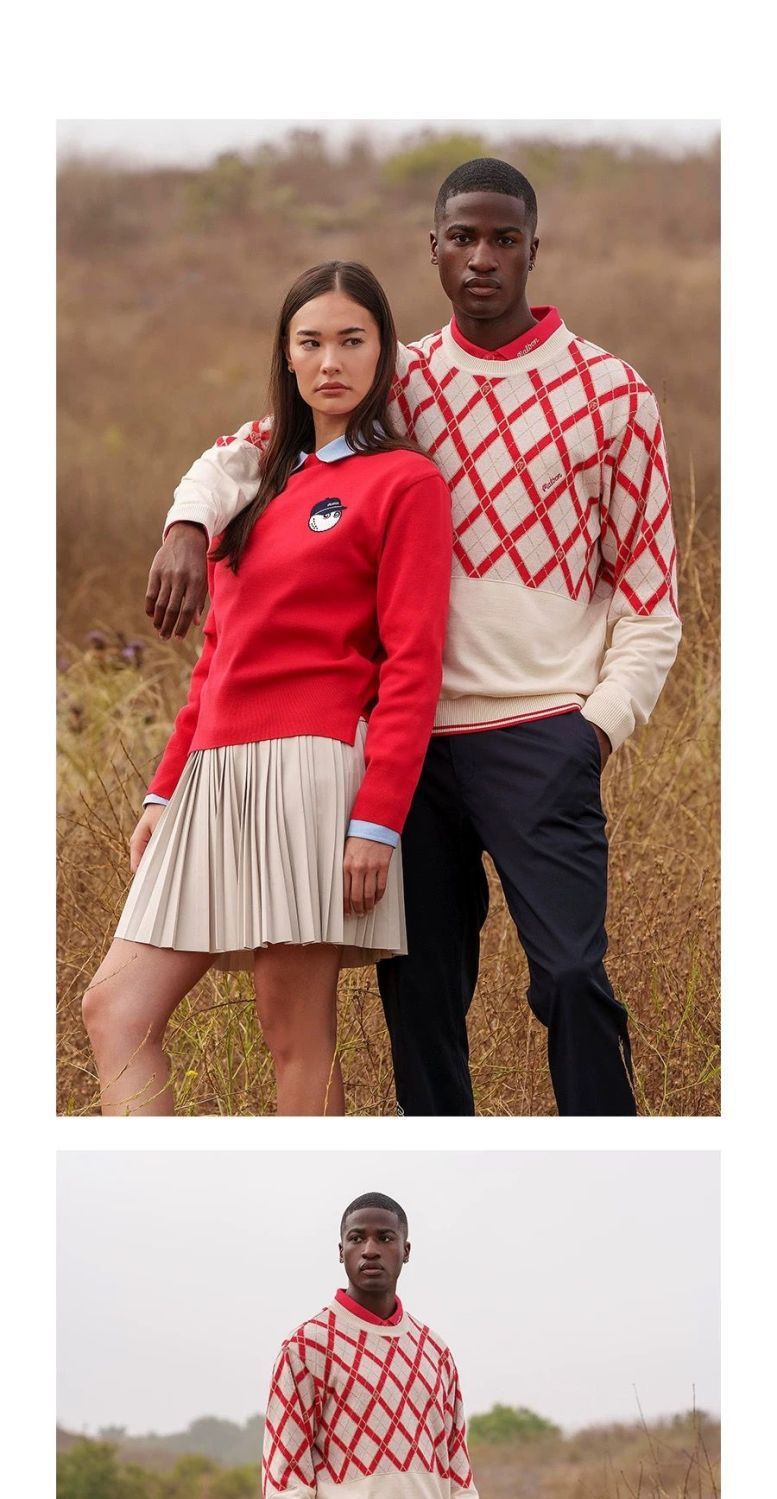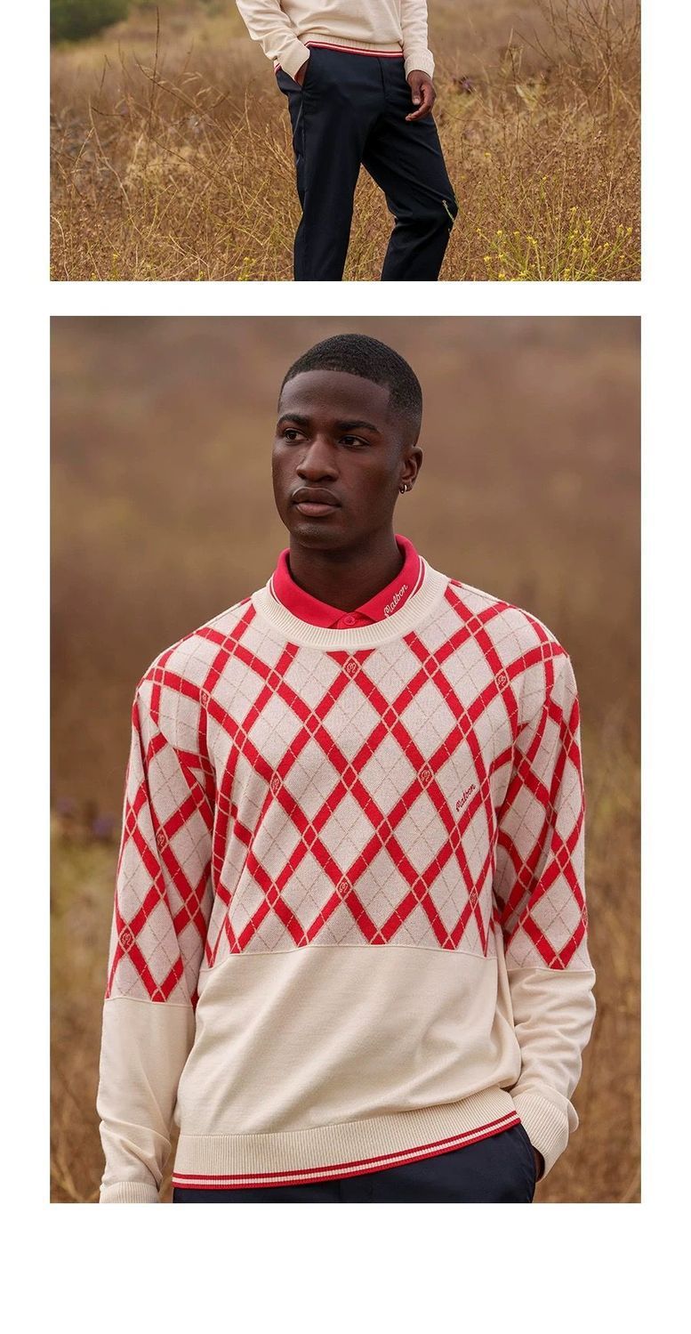 24 가을 겨울 한국 골프웨어 남성 GOLF 다이아몬드 컬러 라운드 넥 풀오버 긴팔 스웨터