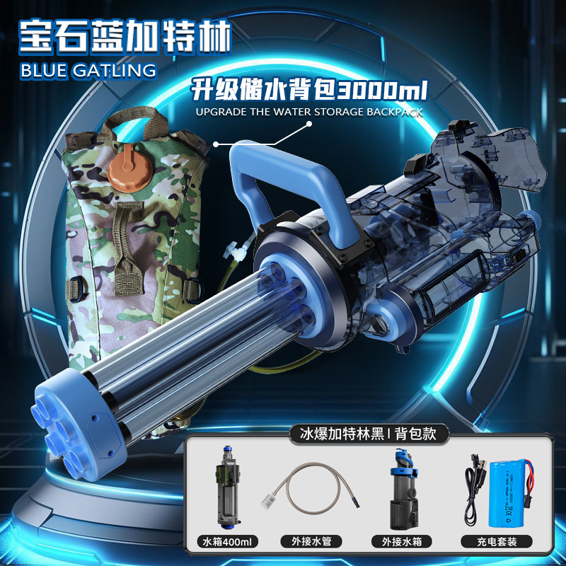 • 전기 버스트 [쿨 라이트] 아이스 블루 - 회전 개틀링 물총 + 3L 확장 백팩