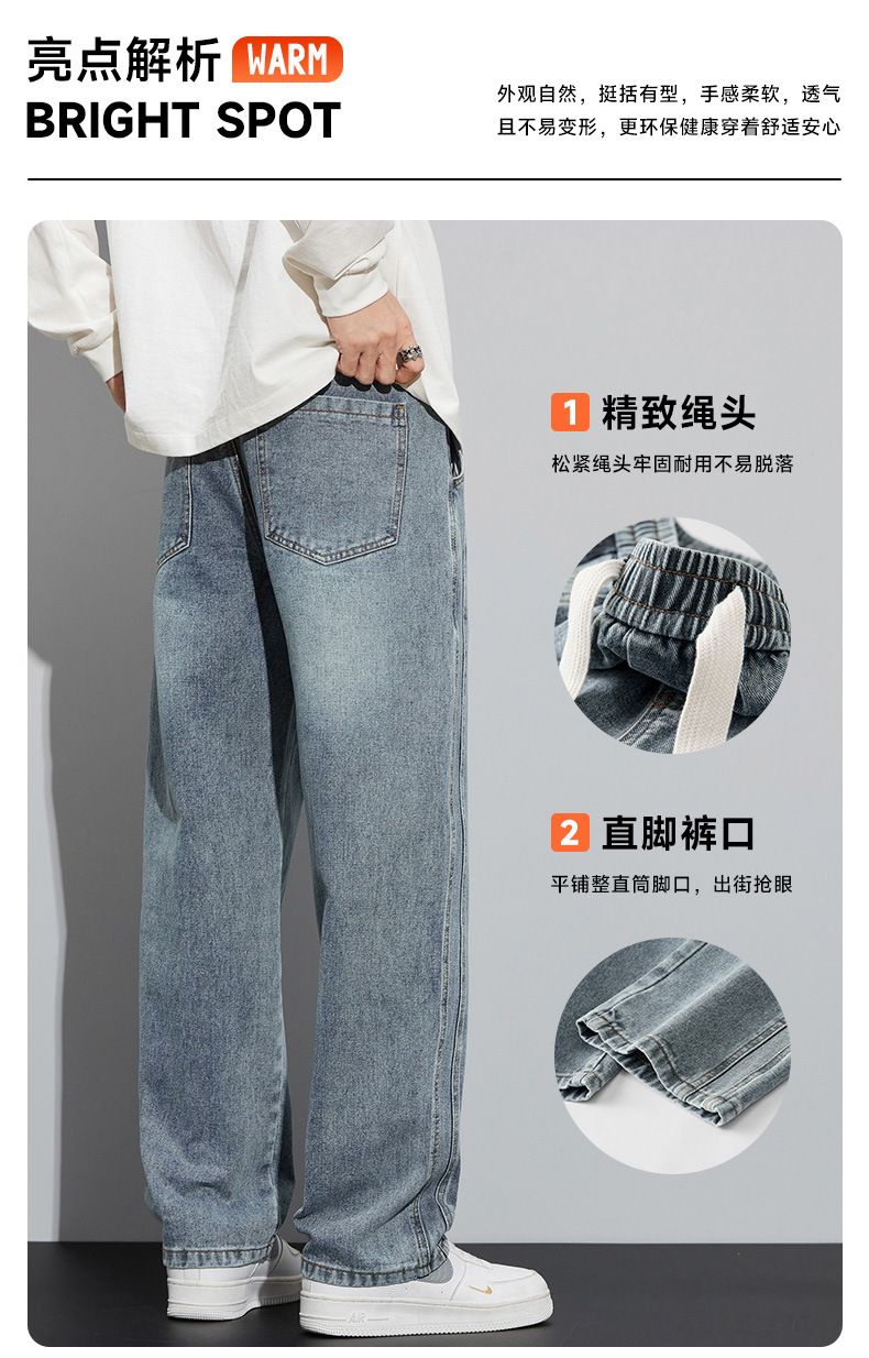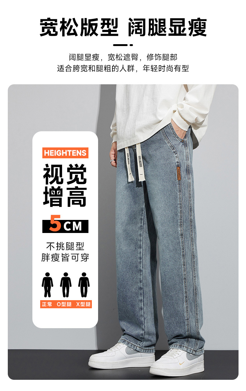 가을, 겨울 루즈 스트레이트 청바지 2024 봄, 가을 남성 아메리칸 하이 스트리트 와이드 레그 캐주얼 롱 팬츠 남성 스타일