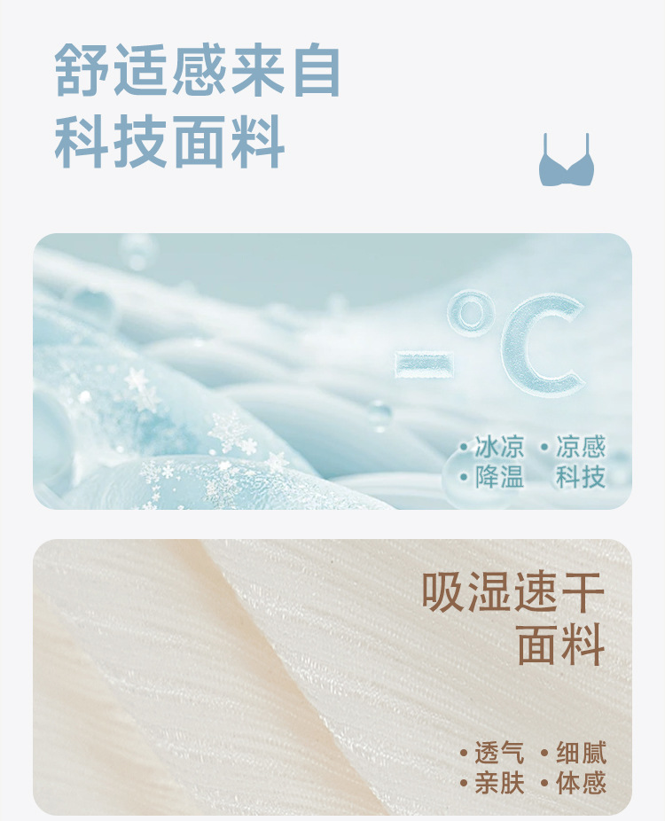 10A 항균 냉각 느낌 속옷 여성용 추적없는 경량 통기성 비 강철 링 브래지어 작은 가슴 큰 드롭 컵 브래지어