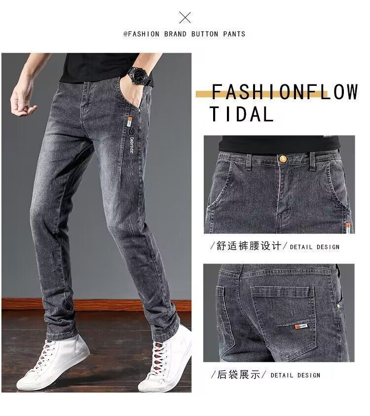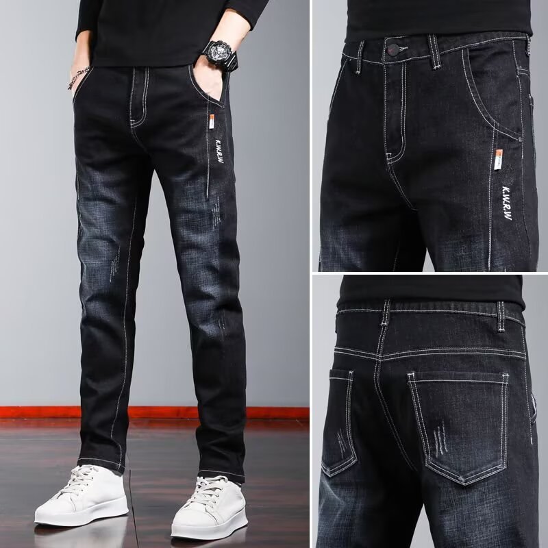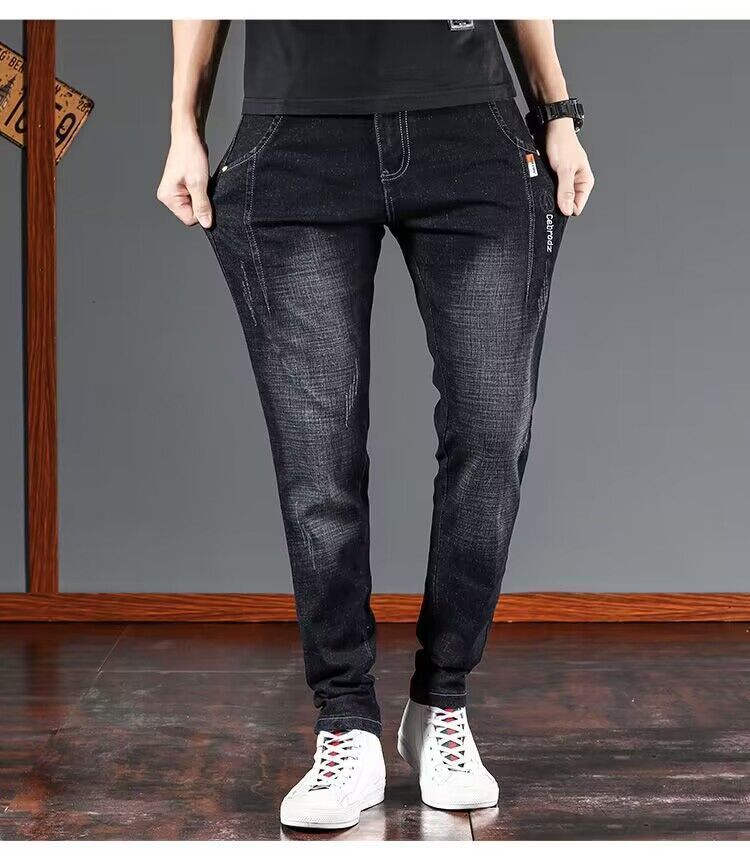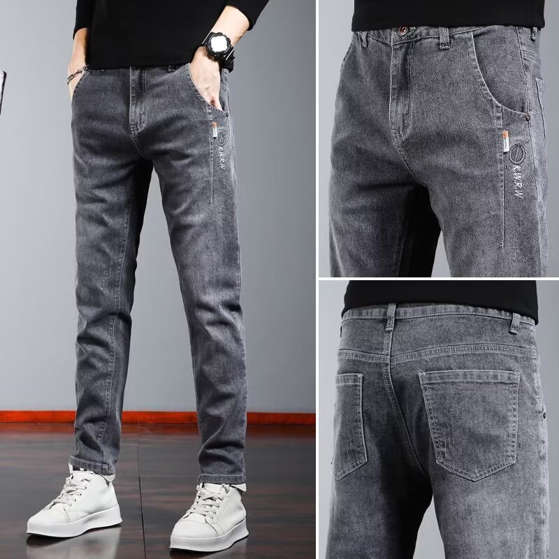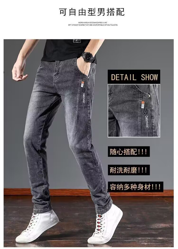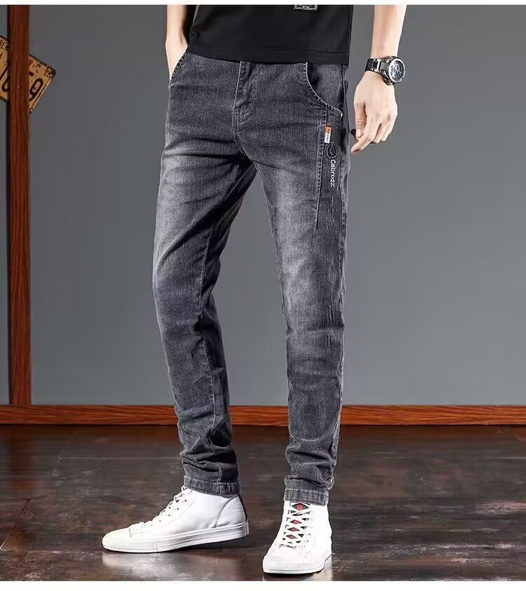 여름 얇은 청바지 남자 2025 새로운 스트레치 슬림 핏 스키니 팬츠, 올 매치 캐주얼 롱 팬츠스토어 가기